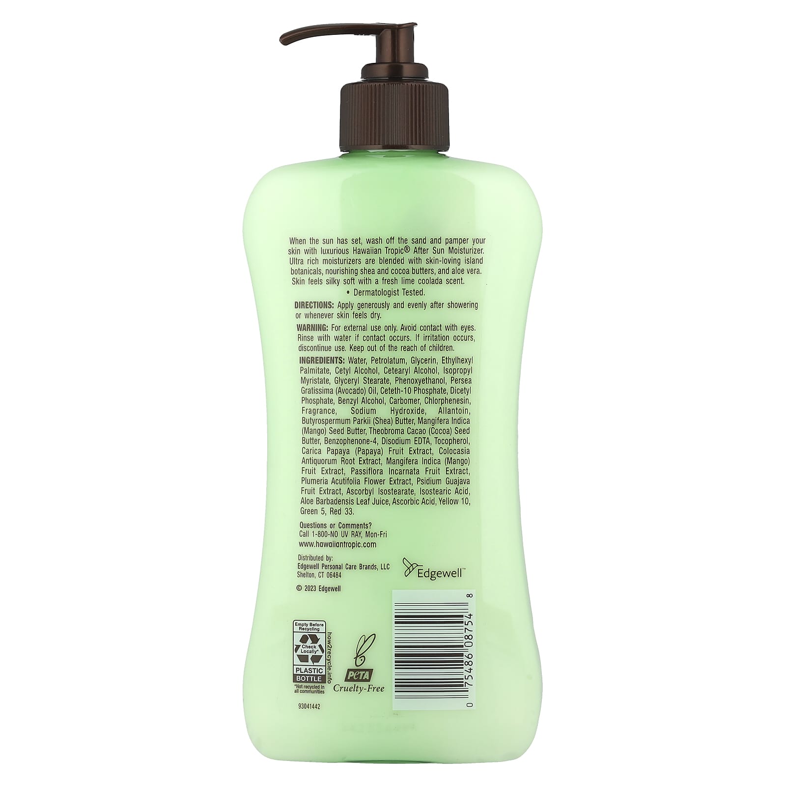 Когда зайдёт солнце, смойте песок и побалуйте кожу роскошным увлажняющим кремом после загара Hawaiian Tropic®. Ультранасыщенные увлажняющие ингредиенты сочетаются с полезными для кожи растительными компонентами, питательным маслом ши и маслом какао, а также алоэ вера. Кожа становится мягкой и шелковистой со свежим ароматом охлаждающего лайма.