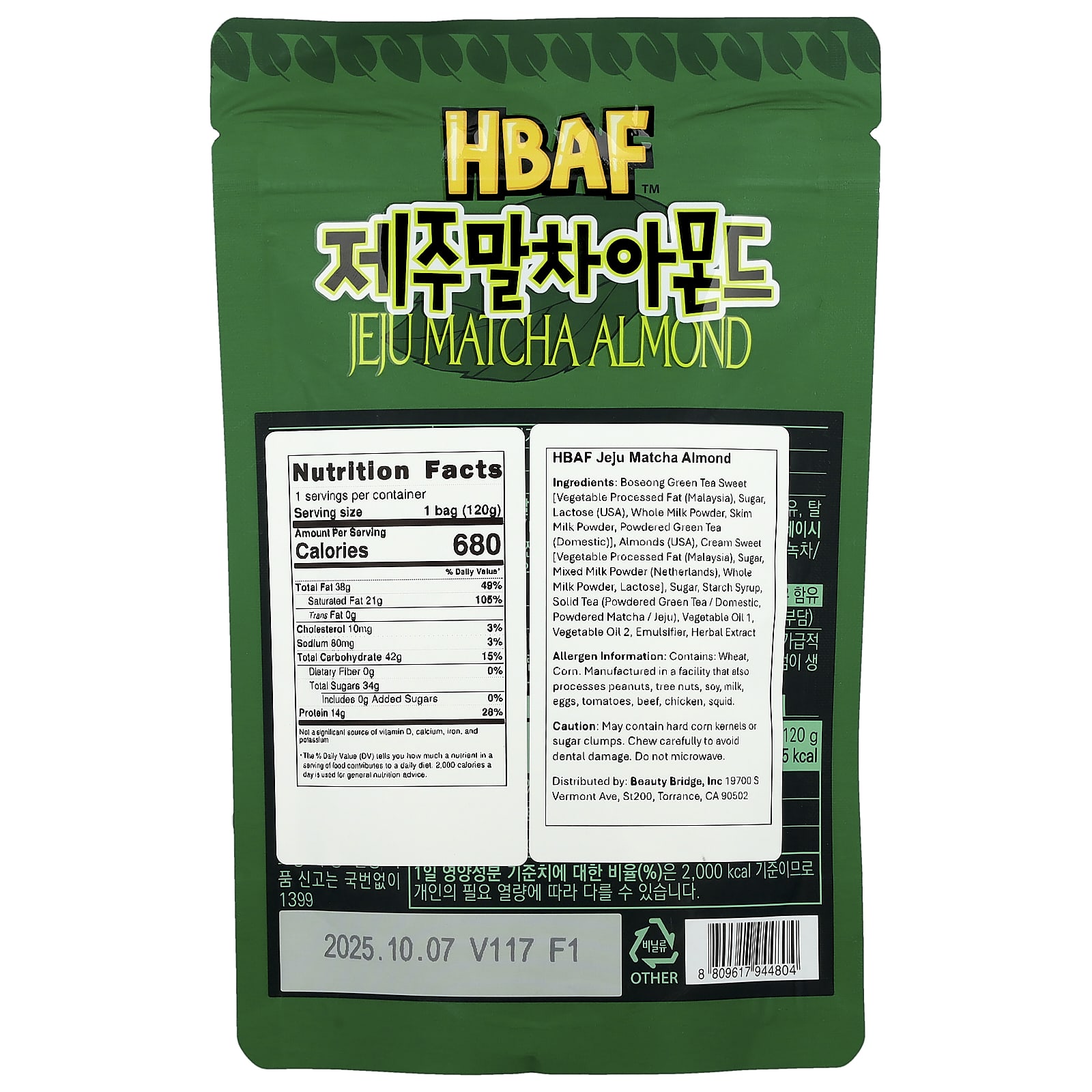 Сладкий зеленый чай Boseong [растительные жиры (малайзия), сахар, лактоза (США), сухое цельное молоко, сухое обезжиренное молоко, порошкообразный зеленый чай (домашний)], миндаль (США), сладкие сливки [растительный жир (Малайзия), сахар, сухое молоко (нидерланды), сухое цельное молоко, лактоза], сахар, крахмальный сироп, твердый чай (зеленый чай в порошке, порошка матча / чеджу), растительное масло 1, растительное масло 2, эмульгатор, травяной экстракт.