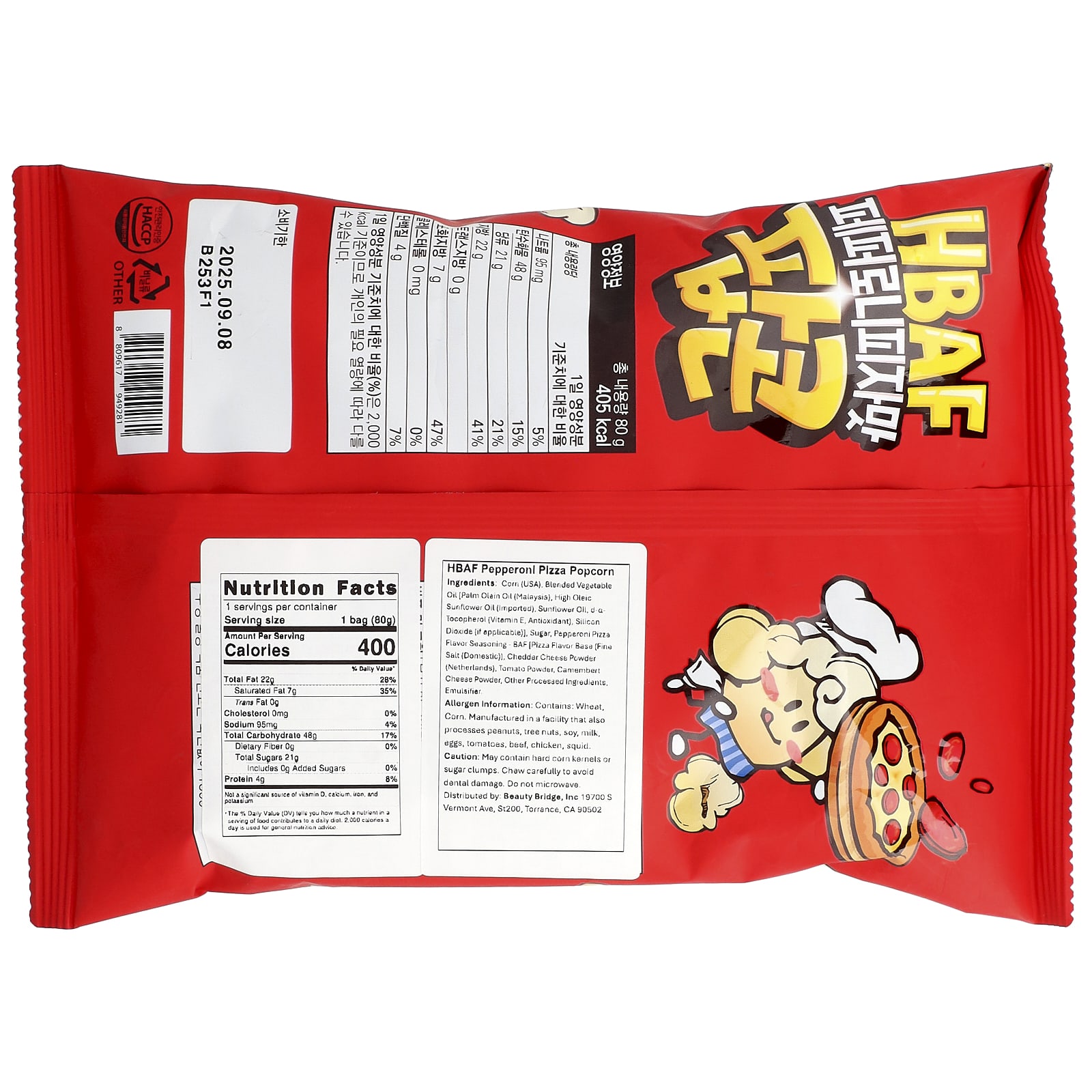 Кукурузы (сша), смешанные растительные масла [пальмовое масло (Малайзия), высокоолеиновое подсолнечное масло (импортное), подсолнечное масло, да-токоферол (витамин Е, антиоксидант), диоксид кремния (если применимо)], сахар, приправа для пиццы пепперони - баф [основа для пиццы (мелкая соль (отечественная)), порошок из сыра чеддер (нидерланды), порошок из томатов, порошок из сыра камамбер, другие обработанные ингредиенты, эмульгатор.