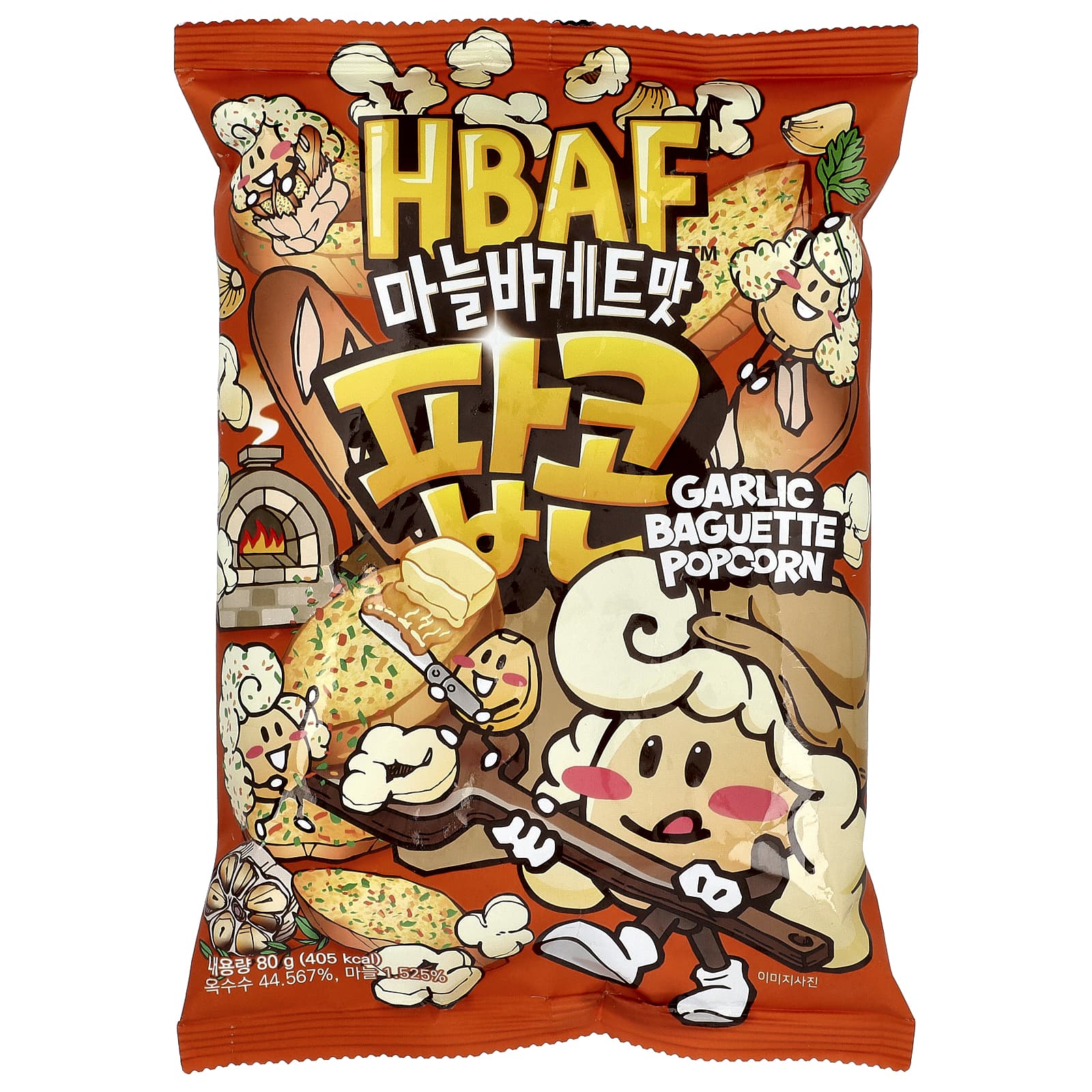 Кукуруза (США), кукурузная крупа, смешанное растительное масло (пальмовое масло, кокосовое масло), изомальт, высокоолеиновое подсолнечное масло (импортное), приправа из морских водорослей, да-токоферол (витамин Е, антиоксидант), глюкозный сироп, сахар, порошок со вкусом масла, чесночный порошок (США / Китай), соль, щелочная соль, пищевая сода.