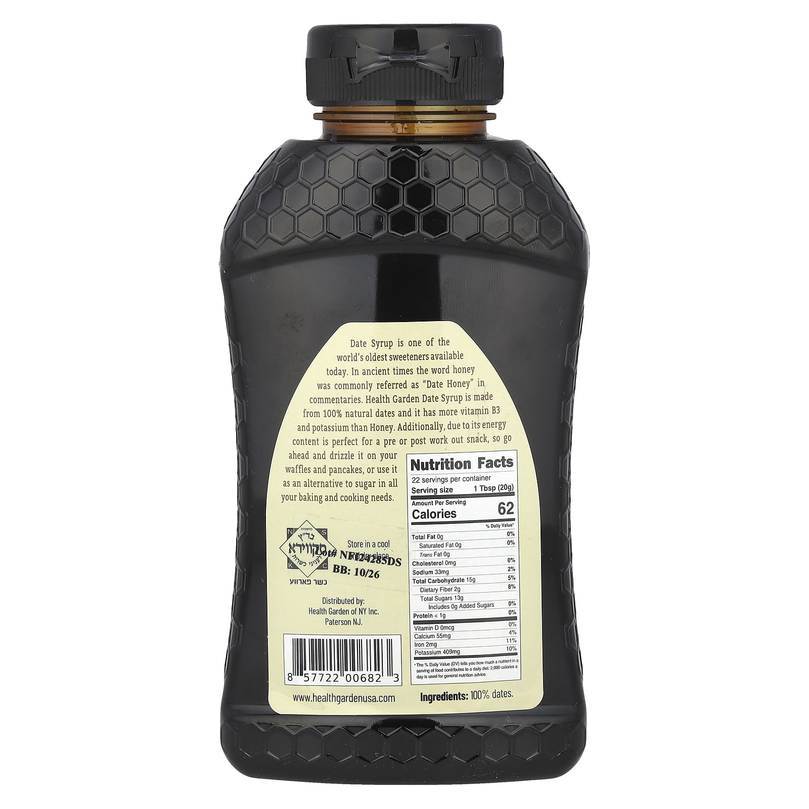 Финиковый сироп - один из старейших подсластителей, доступных на сегодняшний день. В древние времена слово «мед» в комментариях обычно именовалось «финиковым медом». Сироп Health Garden Date изготовлен из 100% натуральных фиников и содержит больше витамина B3 и калия, чем мед.