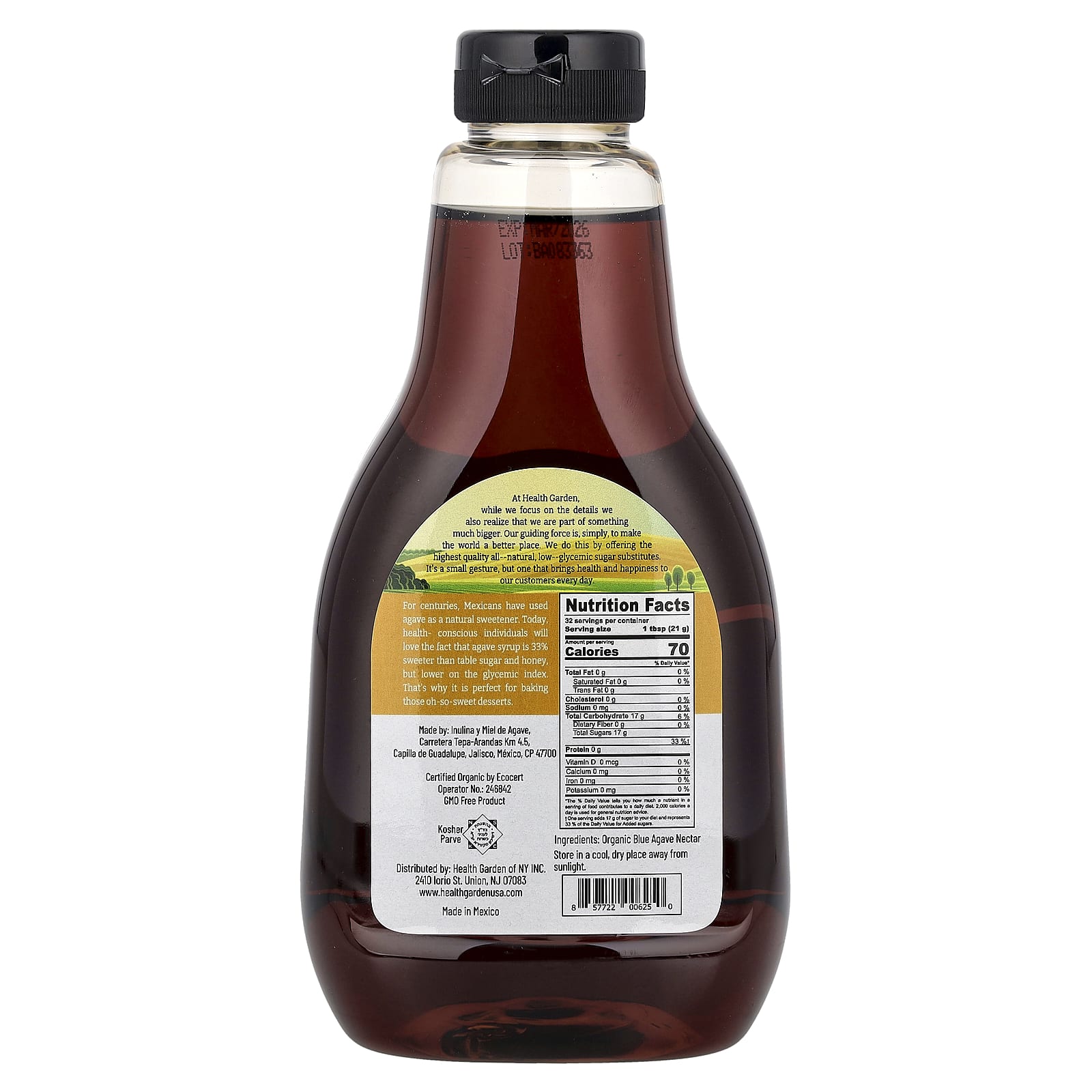 Health Garden, Органическая необработанная агава, подсластитель с низким гликемическим индексом, 660 г (23,28 унции)