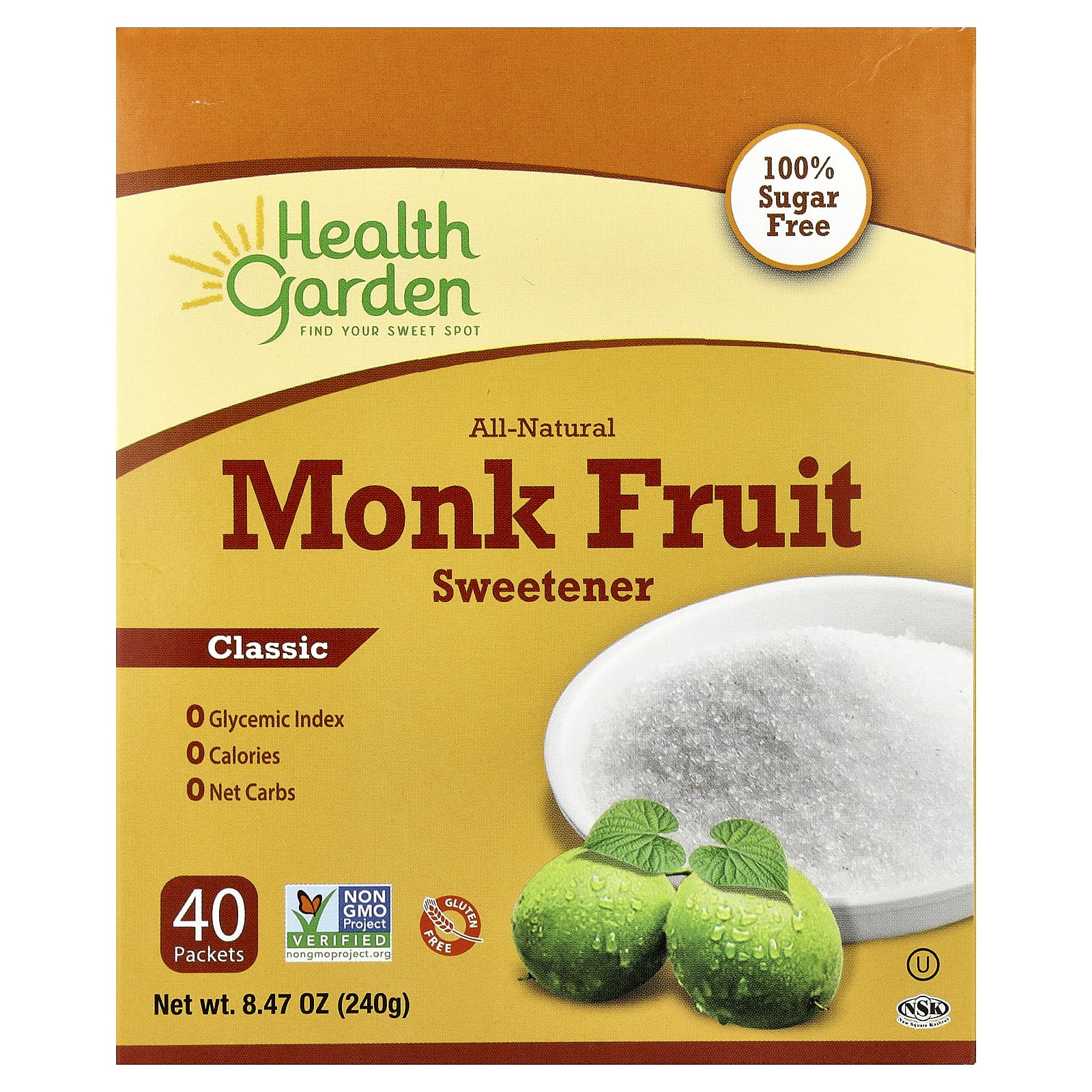 Этот натуральный сладкий продукт извлечен из экзотических плодов монаха, которые веками использовались древними китайцами в медицинских целях, а также в качестве подсластителя. Плоды монаха богаты антиоксидантами и, как известно, полезны при диабете и множестве других заболеваний. Он не содержит калорий и гликемического индекса, что делает его безопасным для диабетиков, аллергиков и людей, соблюдающих схемы снижения веса.
