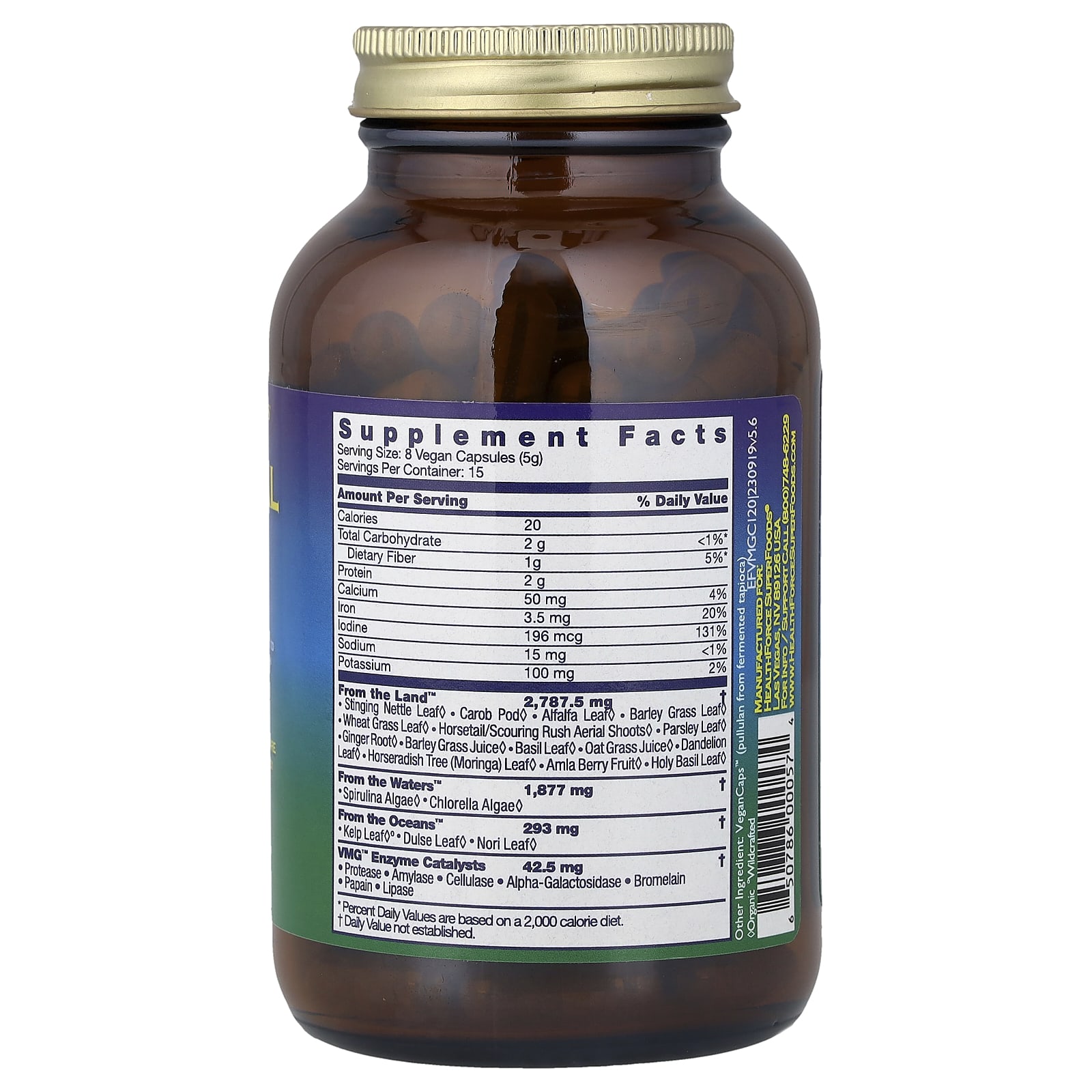 | Размер порции: 8 веганских капсул (5 г) | ||