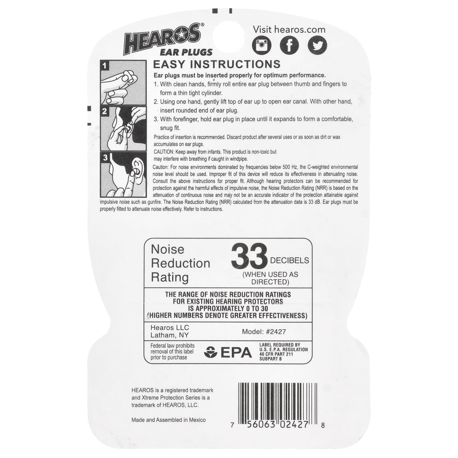 В шумовых средах с преимущественными частотами до 500 Гц следует использовать С-взвешенный уровень окружающего шума. Неправильное использование продукта снизит его эффективность по поглощению шума. См. инструкции выше по правильному использованию. Несмотря на то, что беруши могут рекомендоваться для защиты от вредного воздействия импульсивного шума, уровень снижения шума основан на поглощения равномерного шума и может быть неточен при определении поглощения импульсивного шума - например, выстрелов. Рейтинг снижения шума (NRR) рассчитывается на основании данных затухания, равных 33 dB. Для эффективного поглощения шума беруши необходимо использовать правильно. См. инструкции.