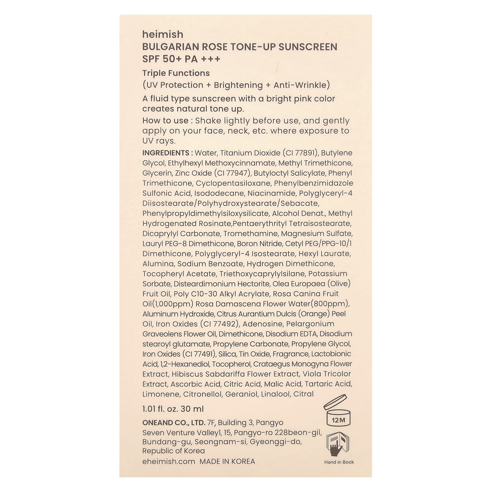Вода, диоксид титана (CI 77891), бутиленгликоль, этилгексил метоксициннамат, метилтриметикон, глицерин, оксид цинка (CI 77947), бутилоктилсалицилат, фенилтриметикон, циклопентасилоксан, фенилбензимидазолсульфоновая кислота, изододекан, никотинамид, полиглицерил-4 диизостеарат/полигидроксистеарат/себакат, фенилпропилдиметилсилоксисиликат, спирт денат., метилгидрогенизированная канифоль, пентаэритритил тетраизостеарат, дикаприлил карбонат, трометамин, сульфат магния, лаурил ПЭГ-8 диметикон, нитрид бора, цетил ПЭГ/ППГ-10/1 диметикон, полиглицерил-4 изостеарат, гексил лаурат, оксид алюминия, бензоат натрия, гидрированный диметикон, токоферилацетат, триэтоксикаприлилсилан, сорбат калия, дистеардимония гекторит, оливковое масло (Olea europaea), поли c10-30 алкил акрилат, масло плодов роза (Rosa canina) (1000 част. / млн), вода из цветков дамасского (Rosa canina) (800 част. / млн), гидроксид алюминия, масло из цедры апельсина (Citrus aurantium dulcis), оксиды железа (CI 77492), аденозин, масло из цветков герани (Pelargonium graveolens), диметикон, двунатриевая ЭДТК, динатрия стеароил глутамат, пропиленкарбонат, пропиленгликоль, оксиды железа (CI 77491), диоксид кремния, оксид олова, отдушка, лактобионовая кислота, 1,2-гександиол, токоферол, экстракт цветков кратаэгуса (Crataegus monogyna), экстракт цветков розеллы (Hibiscus sabdariffa), экстракт фиалки трехцветной, аскорбиновая кислота, лимонная кислота, яблочная кислота, винная кислота, лимонена, цитронеллола, гераниола, линалоол, цитраль.