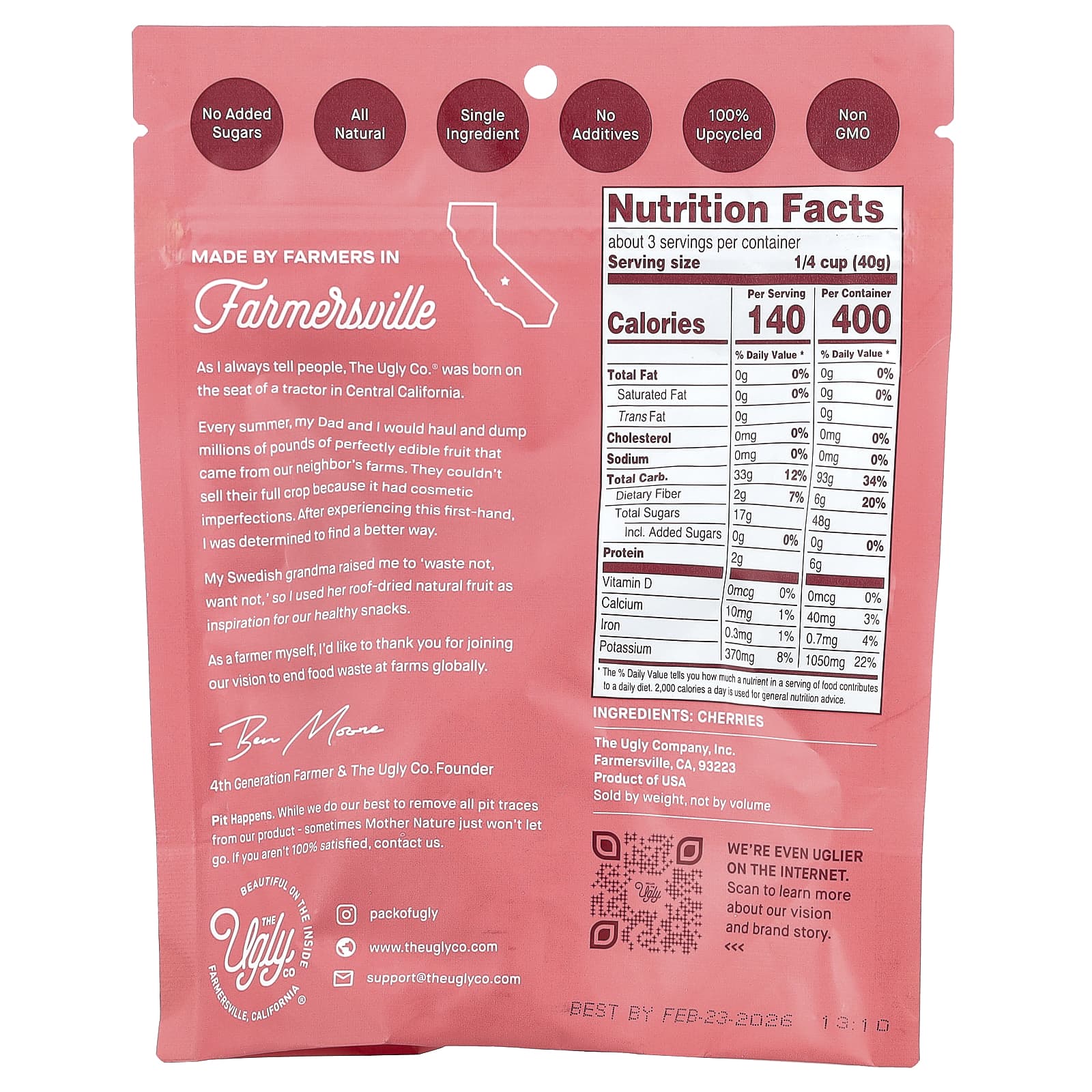 Hello! I'm Ugly, Сухофрукты, цельная вишня, 113 г (4 унции)