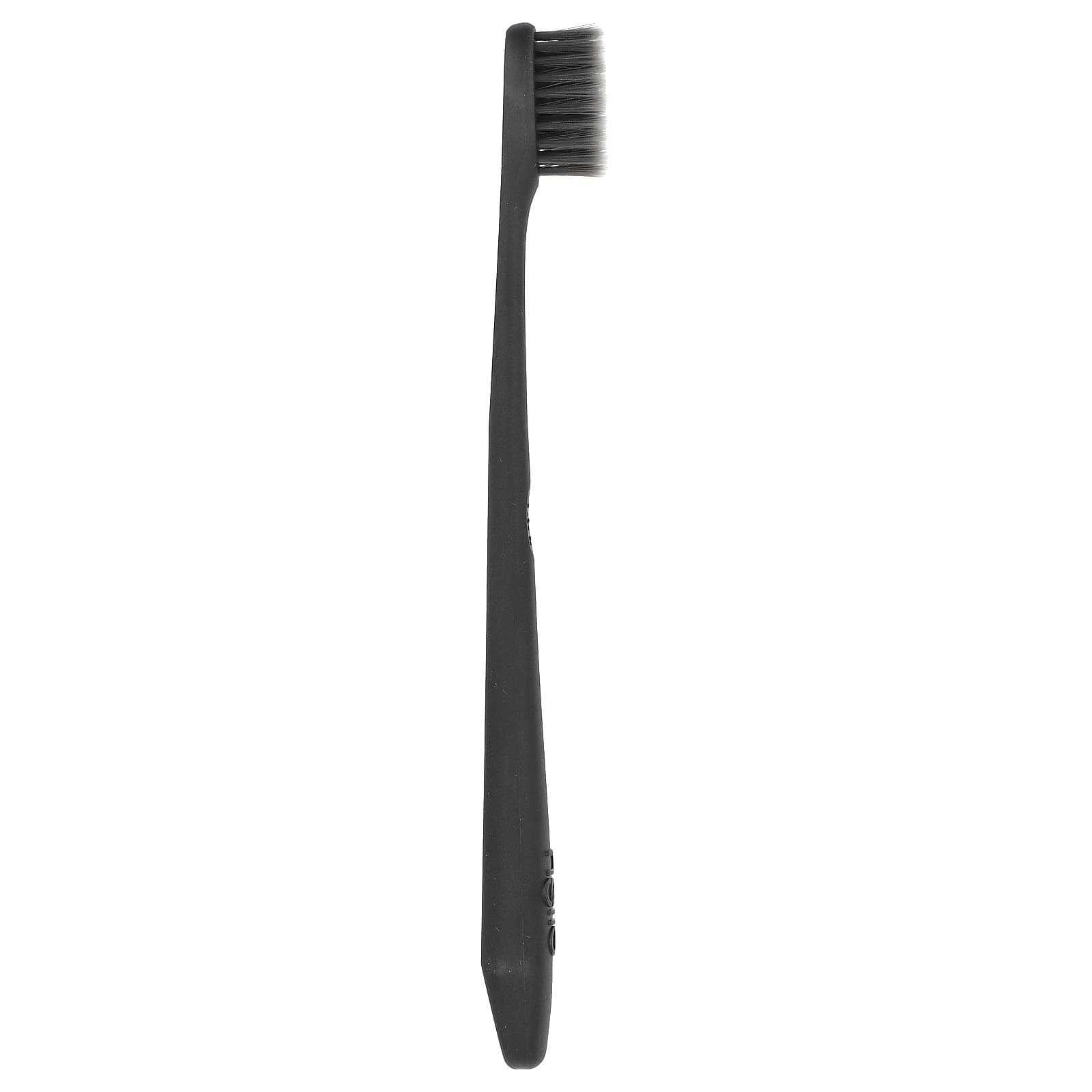 Поздоровайтесь с максимальным удовольствием от чистки зубов. Эта тщательно разработанная зубная щетка отличается мягкими коническими щетинками, пропитанными древесным углем, а суперудобной ручкой из растительных материалов и не содержит бисфенола А.