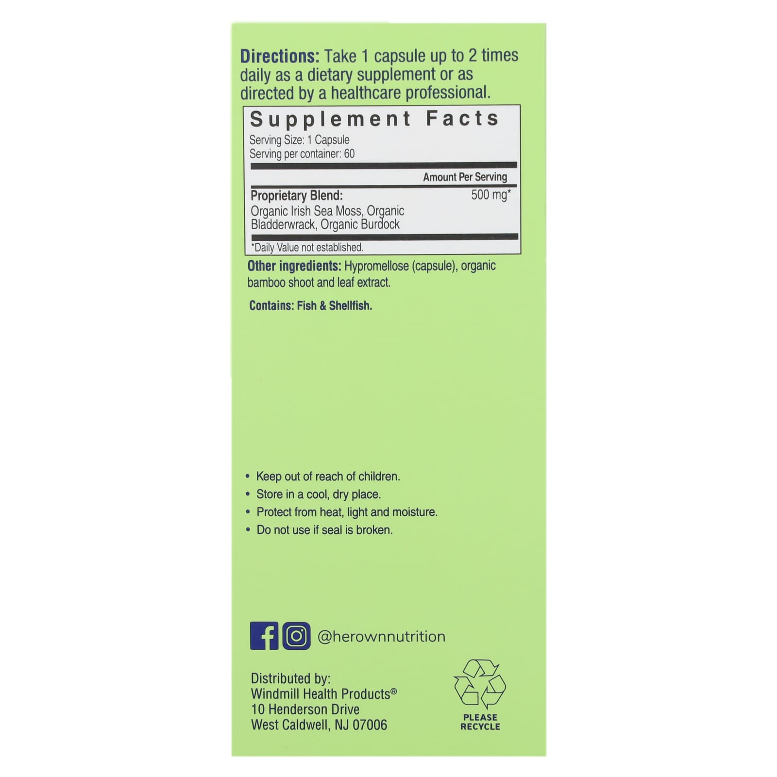Морской мох с ламинарией и корнем лопуха поддерживают здоровье щитовидной железы, обмен веществ и детоксикацию.