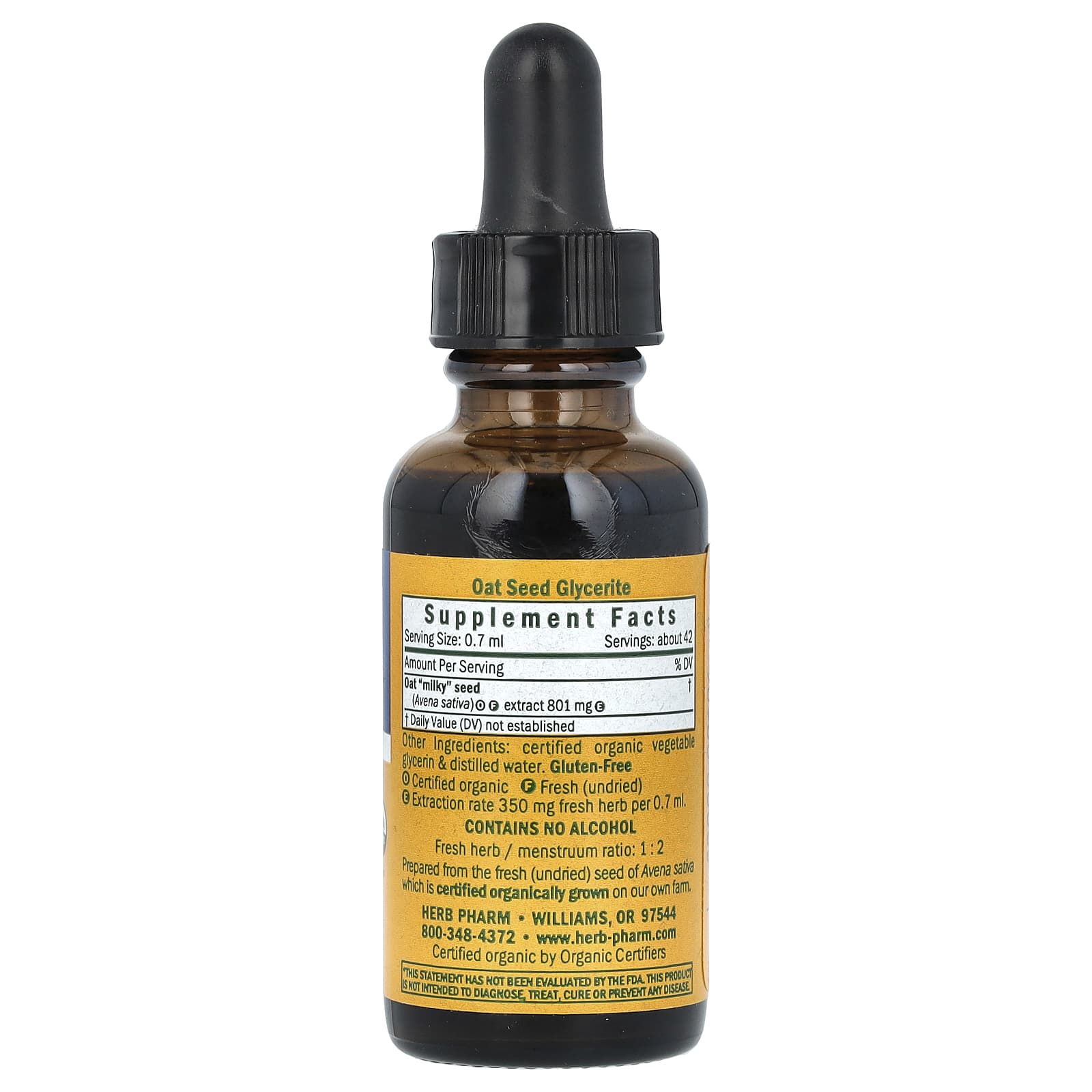 Мы готовим глицерит семян овса без спирта из свежих (не сушеных) семян растения Avena sativa, которые выращены на нашей сертифицированной органической ферме в южном Орегоне.