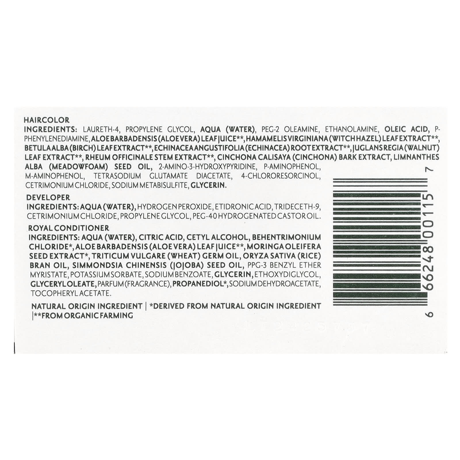 Ингредиенты проявителя: Вода (Aqua), перекись водорода, этидроновая кислота, тридецет-9, цетримония хлорид, пропиленгликоль, ПЭГ-40 гидрогенизированное касторовое масло.