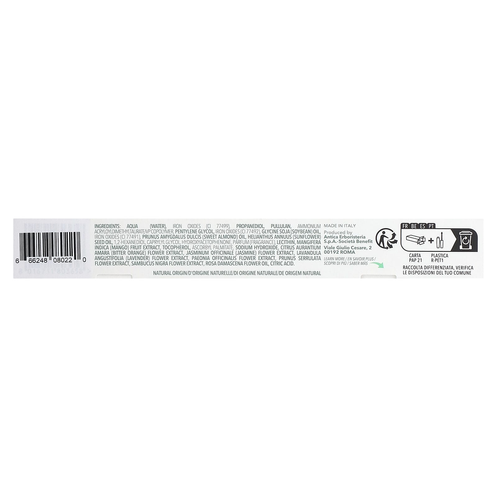 Вода (Aqua), оксиды железа (CI 77499), пропандиол, пуллулан, акрилоилдиметилтаурат/ВП сополимер, пентилен гликоль, оксиды железа (CI 77492), соевое масло (глицин), оксиды железа аммония (CI 77491), масло сладкого миндаля (Prunus amygdalus dulcis), подсолнечное масло (Helianthus annuus), 1,2-гександиол, каприлилгликоль, гидроксиацетофенон, парфюмерная композиция (отдушка), лецитин, экстракт плодов манго (Mangifera indica), токоферол, аскорбил пальмитат, гидроксид натрия, экстракт цветков горького апельсина (Citrus aurantium amara), экстракт цветков жасмина (Jasminum officinale), экстракт цветков лаванды (Lavandula angustifolia), экстракт цветков пиона (Paeonia officinalis), экстракт цветков сакуры мелкопильчатой (Prunus serrulata), экстракт цветков бузины (Sambucus nigra), масло из цветков дамасской розы (Rosa damascena), лимонная кислота.