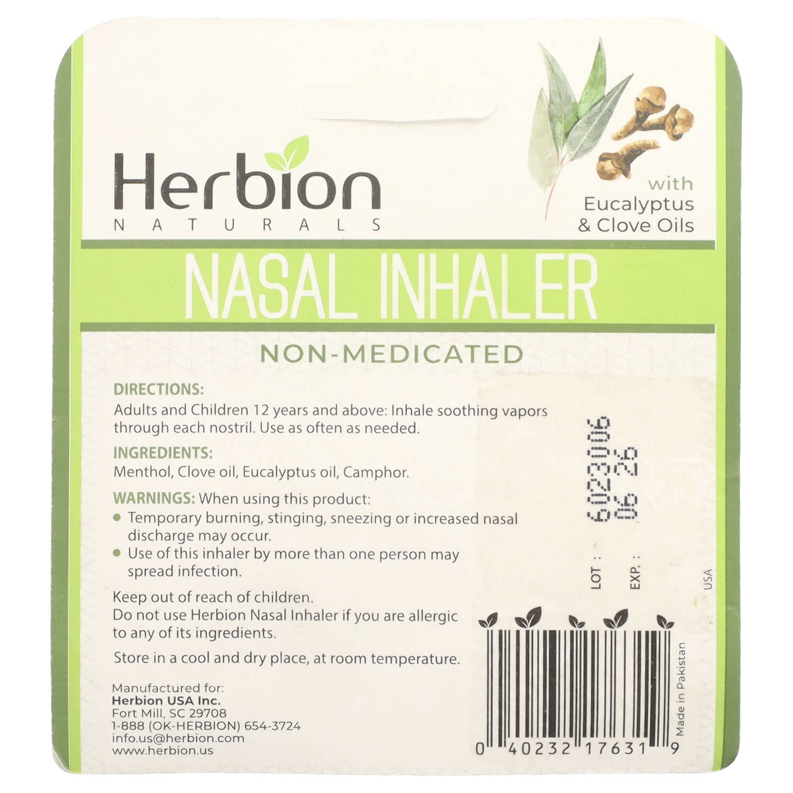 Хранить в недоступном для детей месте. Не используйте назальный ингалятор Herbion, если у вас аллергия на какой-либо из его ингредиентов.