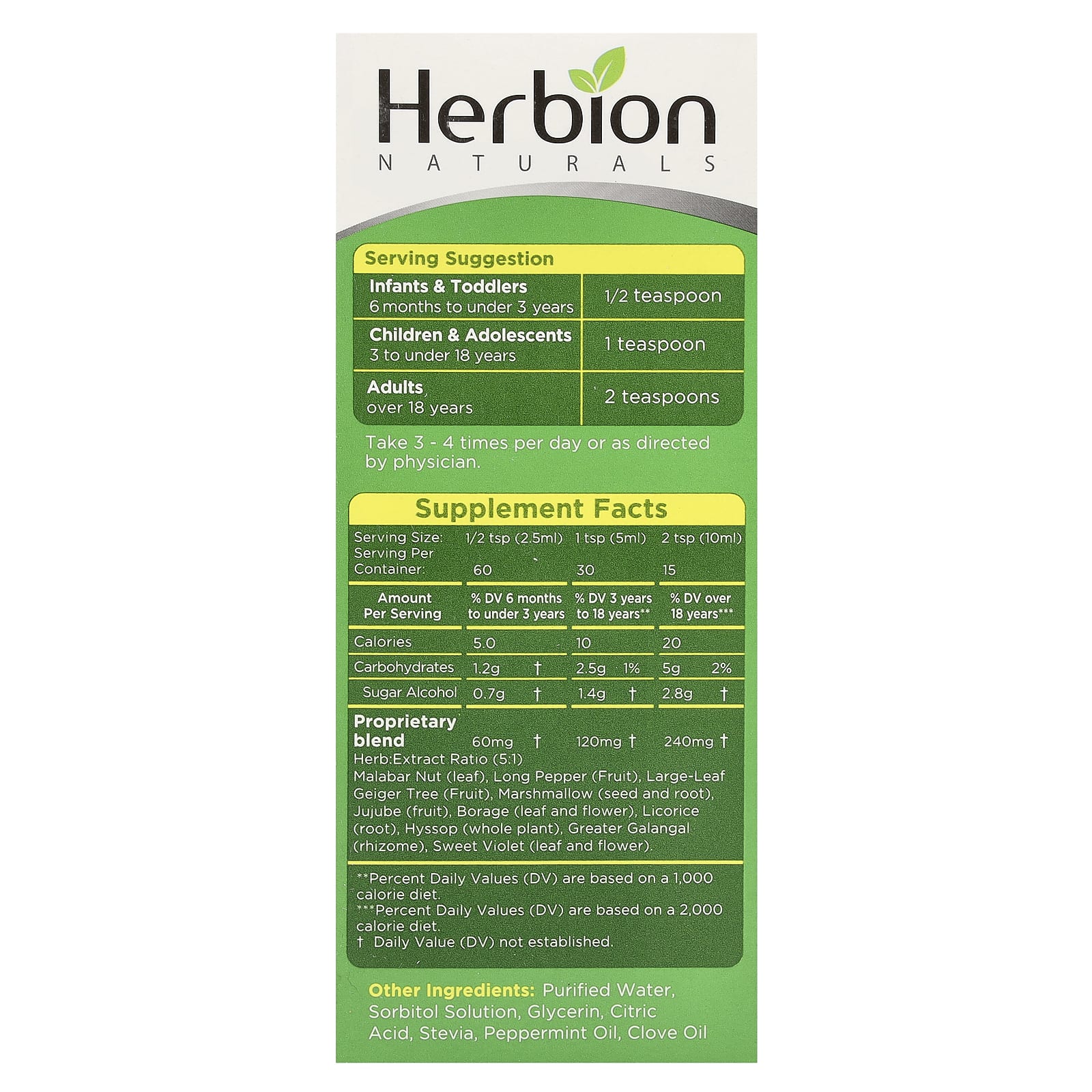 | Размер порции: 1/2 чайной ложки (2,5 мл) / 1 чайной ложки (5 мл) / 2 чайной ложки (10 мл) | ||||||