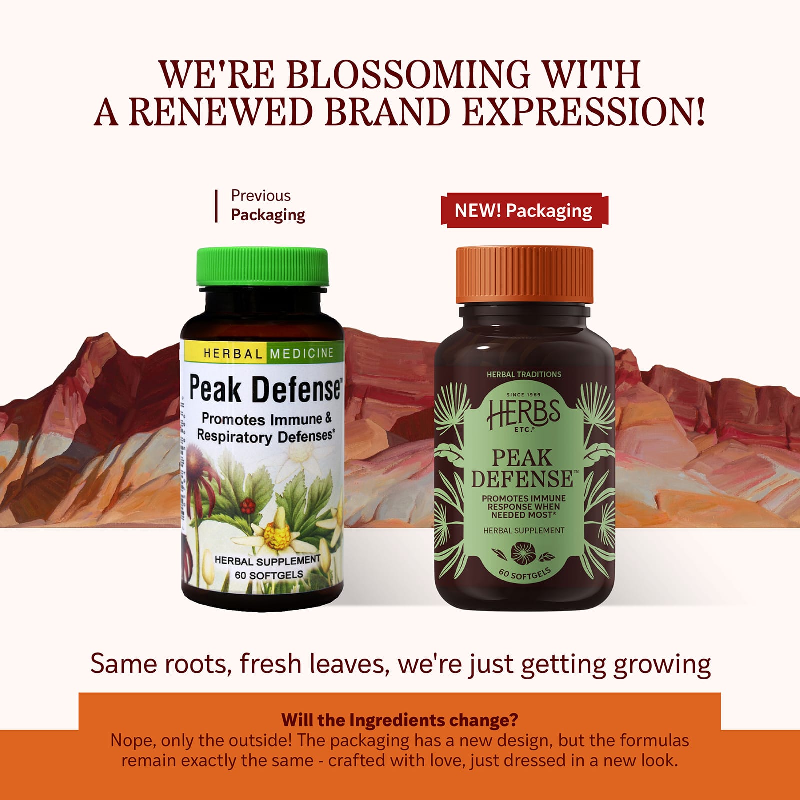 Herbs, Etc. предлагает широкий ассортимент растительных средств для поддержания здоровья и жизненной силы. Peak Defense™ не является исключением; мы выбираем правильные травы в нужное время, соблюдаем проверенные временем процессы и разрабатываем формулы, поддерживающие ритмы вашего организма. Каждый продукт, который мы создаем, основан на десятилетиях экспертных знаний и заботы, предоставляя людям целебный потенциал растений.