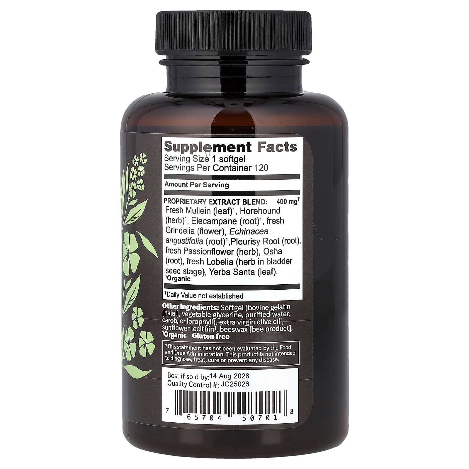 Lung Tonic™ - ежедневный ингредиент для поддержки дыхательной системы. Он содержит травы, поддерживающие здоровье легких и бронхов, такие как листья коровяка, шандра и цветок гринделии, которые, как известно, успокаивают, открывают и питают дыхательную систему. Этот тоник обеспечивает посто