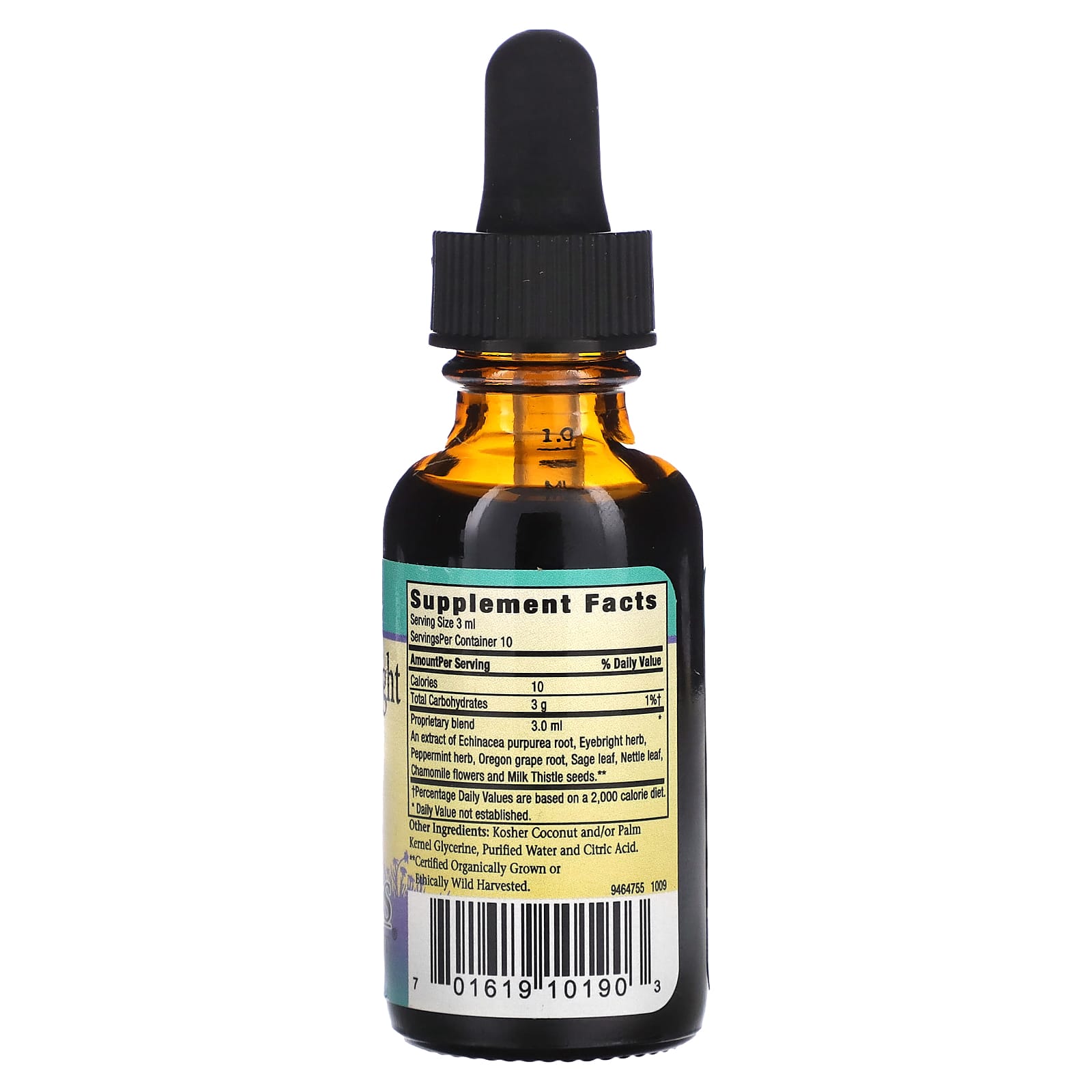 | Запатентованная смесь экстракт корня эхинацеи пурпурной (Echinacea purpurea), травы очанки, травы перечной мяты, корня орегонского винограда, листьев шалфея, листьев крапивы, цветков ромашки и семян расторопши**. | 3,0 мл | * |