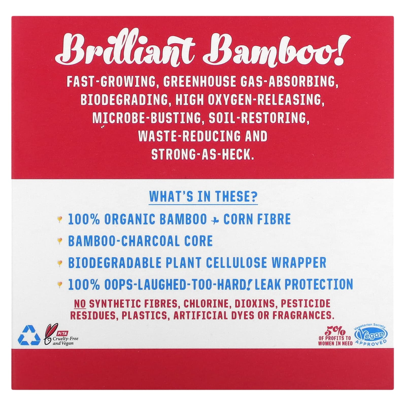 Вкладыши Glo сделаны из впитывающего органического бамбука с уникальной сердцевиной из древесного угля, устраняющей неприятные запахи. Таким образом, вы можете смело смеяться, чихать и прыгать.