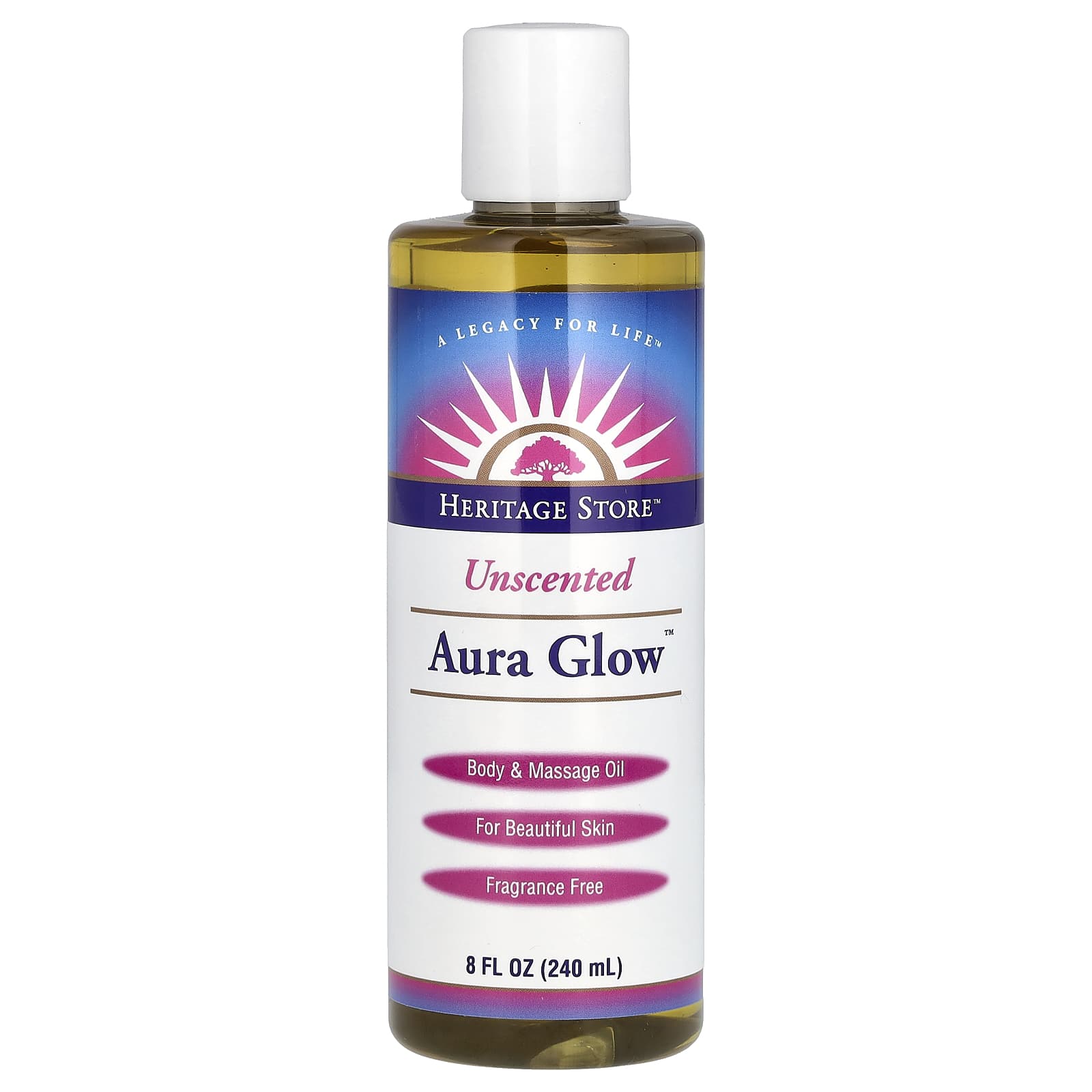 Aura Glow™ — это сияние и энергия, которые дает забота о вашем теле и душе. С миндалем Heritage Store Aura Glow™ кожа станет более мягкой, эластичной и сияющей. Наше насыщенное питательное сочетание сертифицированных чистых арахисового и оливкового масел, ланолина и витамина Е легко впитывается в ваш организм и является идеальным увлажняющим и смягчающим средством для всего тела.