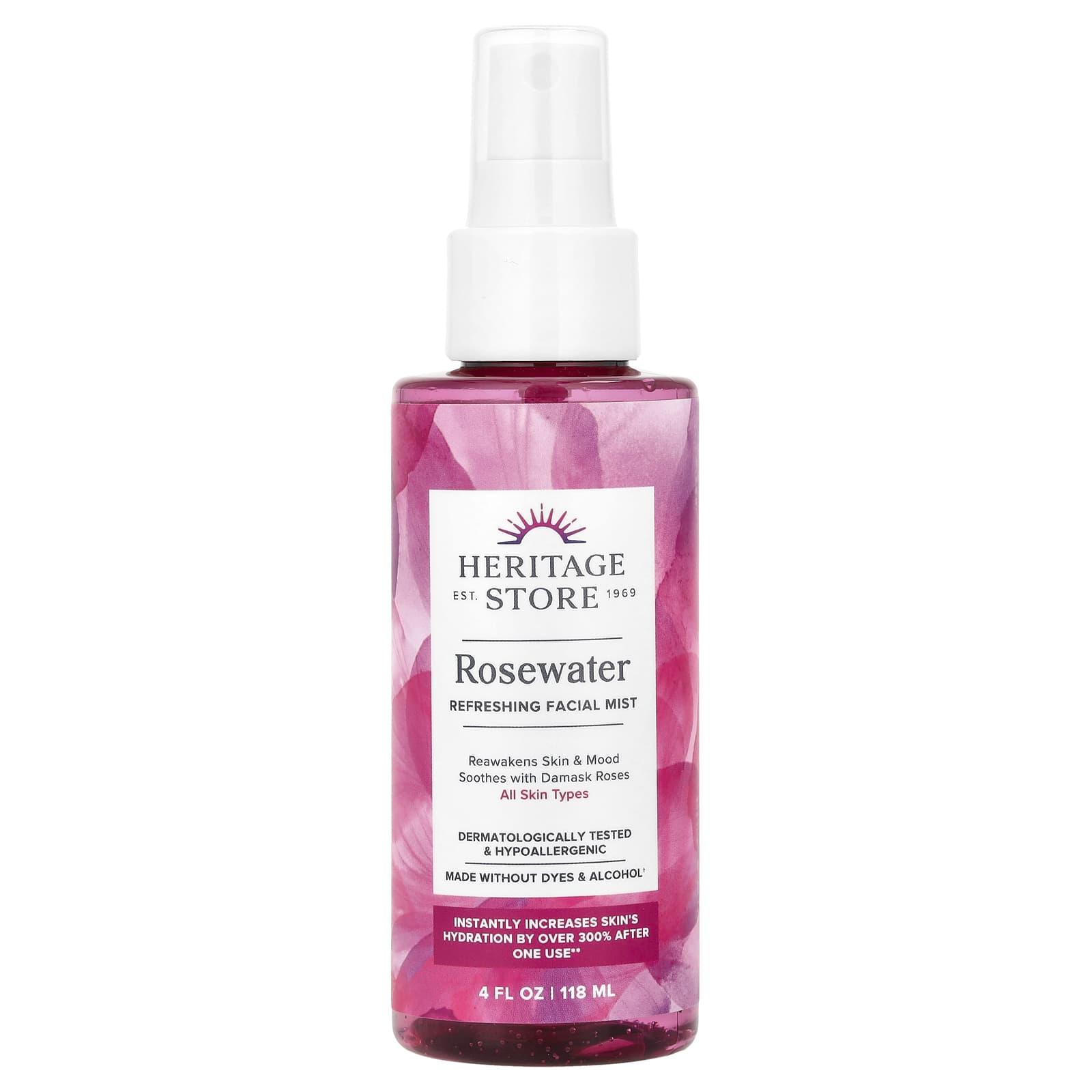 Heritage Store, розовая вода, освежающий спрей для лица, 118 мл (4 жидк. унции)