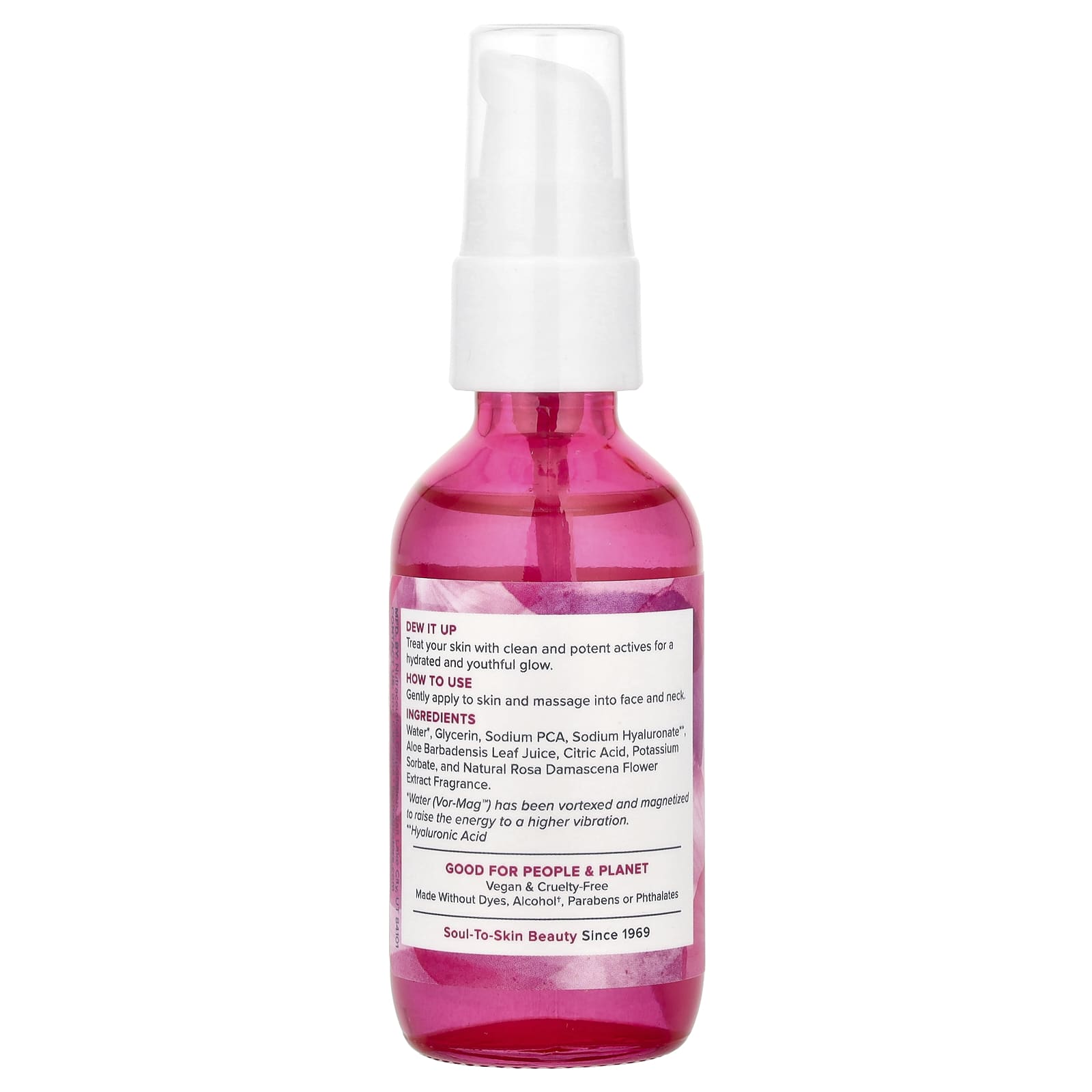 Очищенная вода *, глицерин (растительный), пирролидонкарбонат натрия, гиалуронат натрия (гиалуроновая кислота), сок листьев алоэ вера (Aloe barbadensis), лимонная кислота, сорбат калия и масло из цветков дамасской розы.