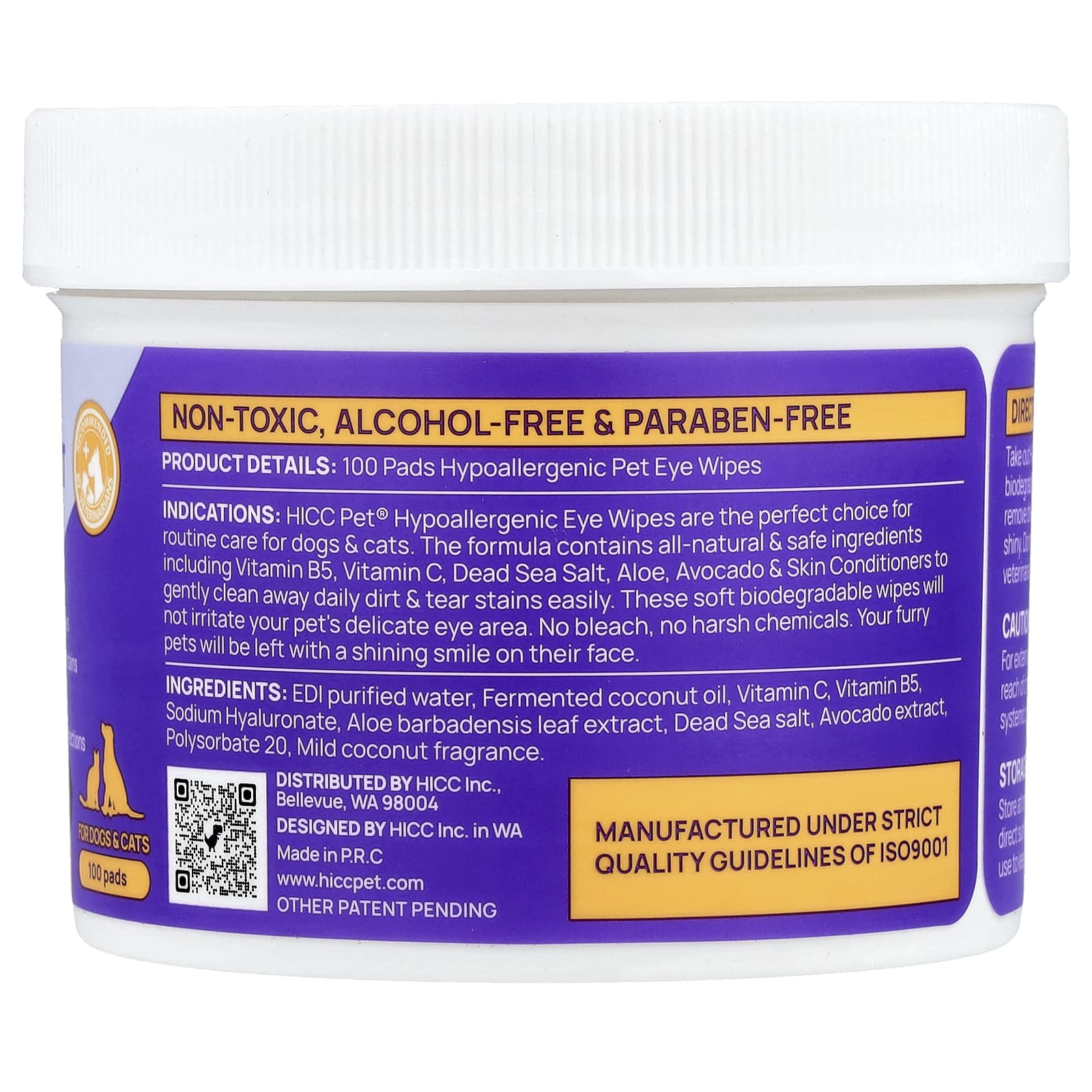 Показание: Гипоаллергенные салфетки для глаз HICC Pet® — идеальный выбор для повседневного ухода за собаками и кошками. Формула содержит полностью натуральные и безопасные ингредиенты, включая витамин B5, витамин C, соль Мертвого моря, алоэ, авокадо и кондиционеры для кожи, которые бережно и легко удаляют ежедневные пятна грязи и слез. Эти мягкие биоразлагаемые салфетки не раздражают нежную кожу вокруг глаз вашего питомца. Без отбеливателей и агрессивных химических веществ. На мордочке ваших пушистых питомцев будет сияющая улыбка.