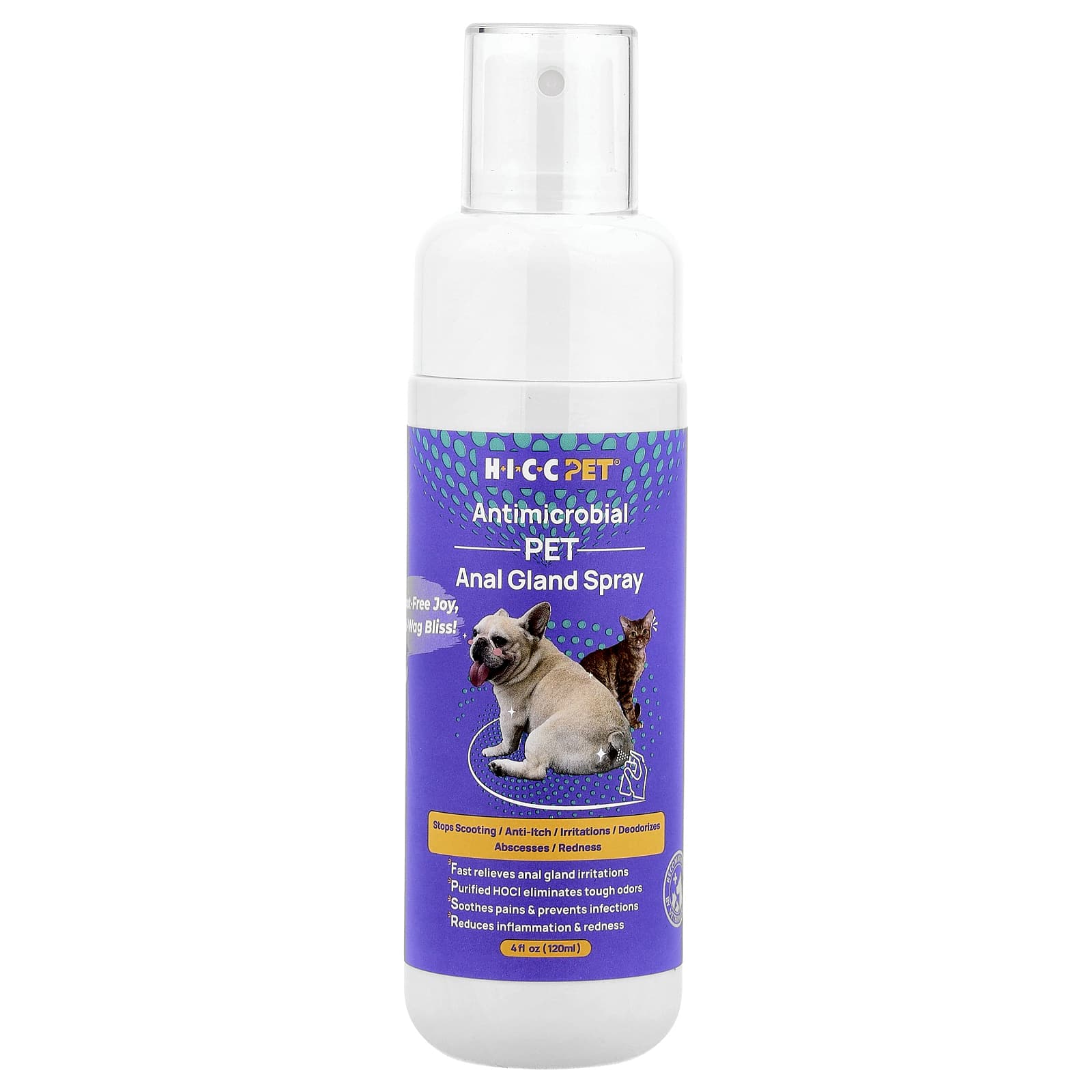 Антимикробный спрей для анальной железы домашних животных HICC Pet® быстро снимает раздражение анальной железы и успокаивает зуд. Он помогает удалить стойкие запахи, вызванные секретом анальных желез, некротизированными тканями, фекалиями и мочой. Он уменьшает движение питомца и избавляет от необходимости олизываться. Идеально подходит для ежедневного ухода за анальными железами или восстановления ухода за ними после опорожнения анальных желез. Обязательный продукт для поддержания здоровья ягодиц вашего пушистого малыша. Чтобы вернуть его!