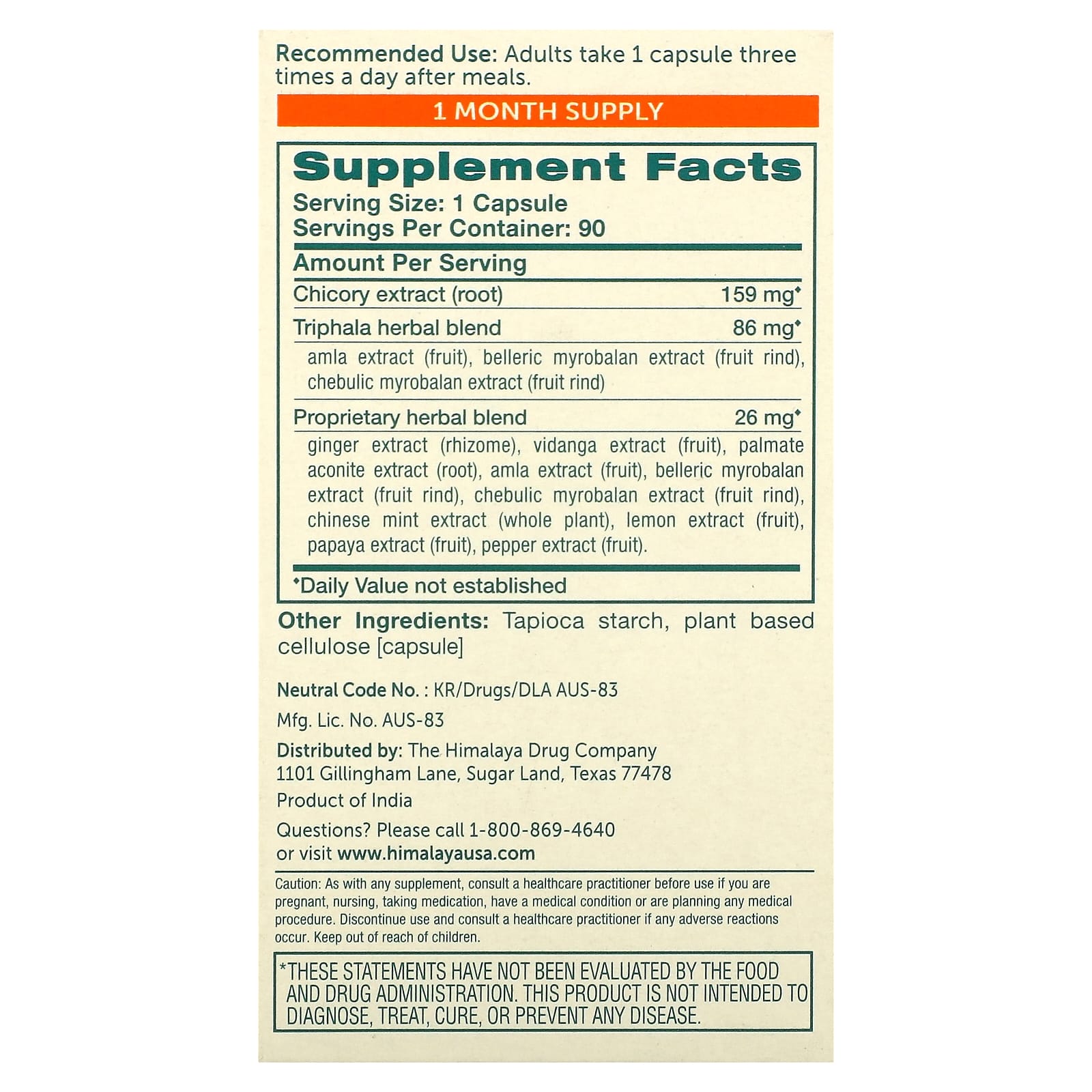 - Содержит трифалу, имбирь & Цикорий