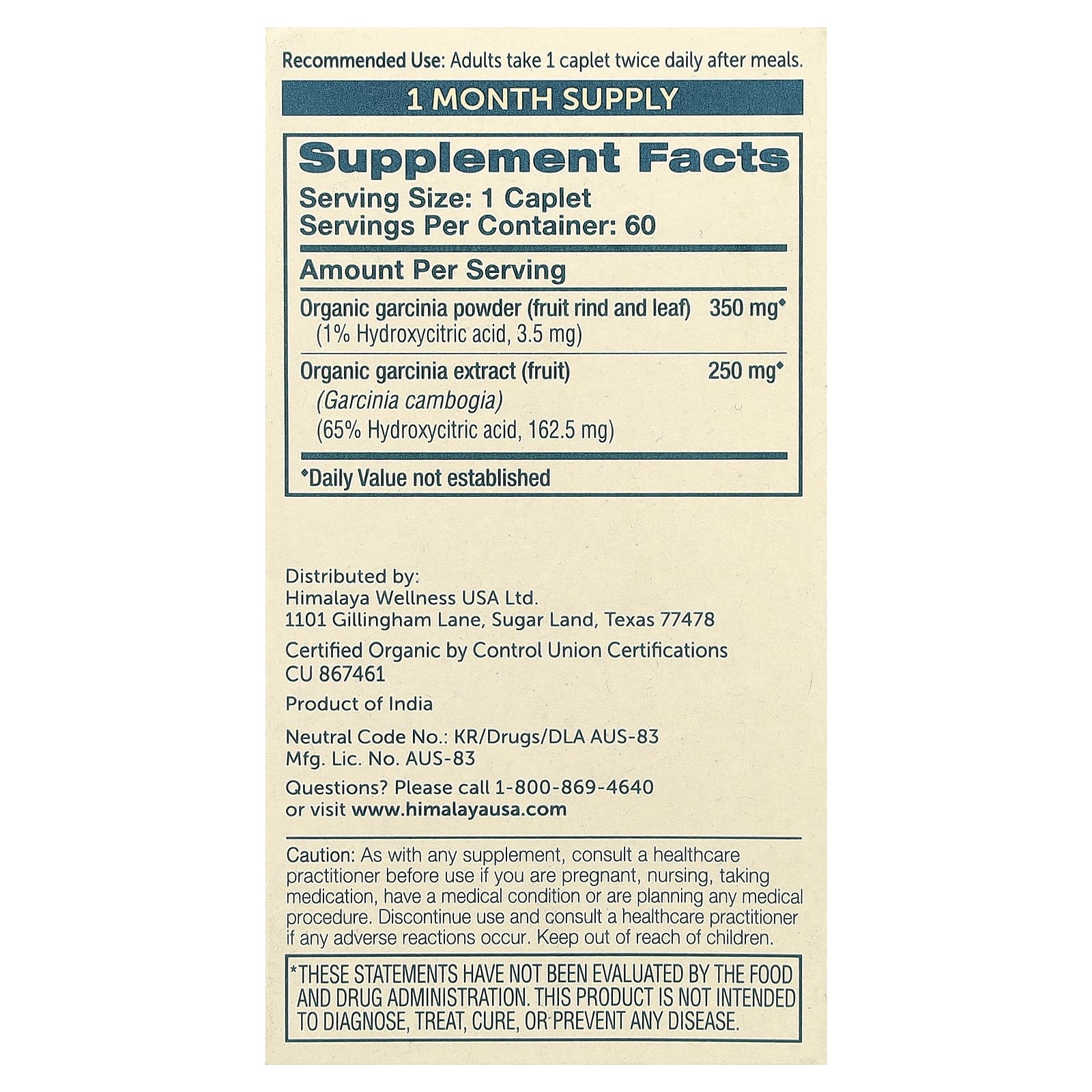 | Органический порошок garcinia (фруктовая корка и листья) (1% гидроксиаминокислота, 3,5 г) | 350 мг | ♦ |