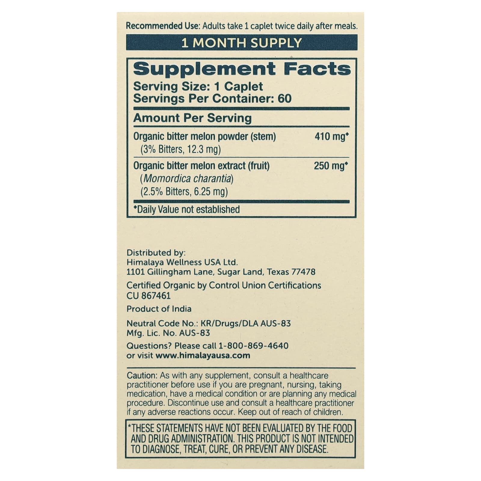 | Порошок из стебля органической горькой тыквы (3% горькой настойки, 12,3 мг) | 410 мг | * |
