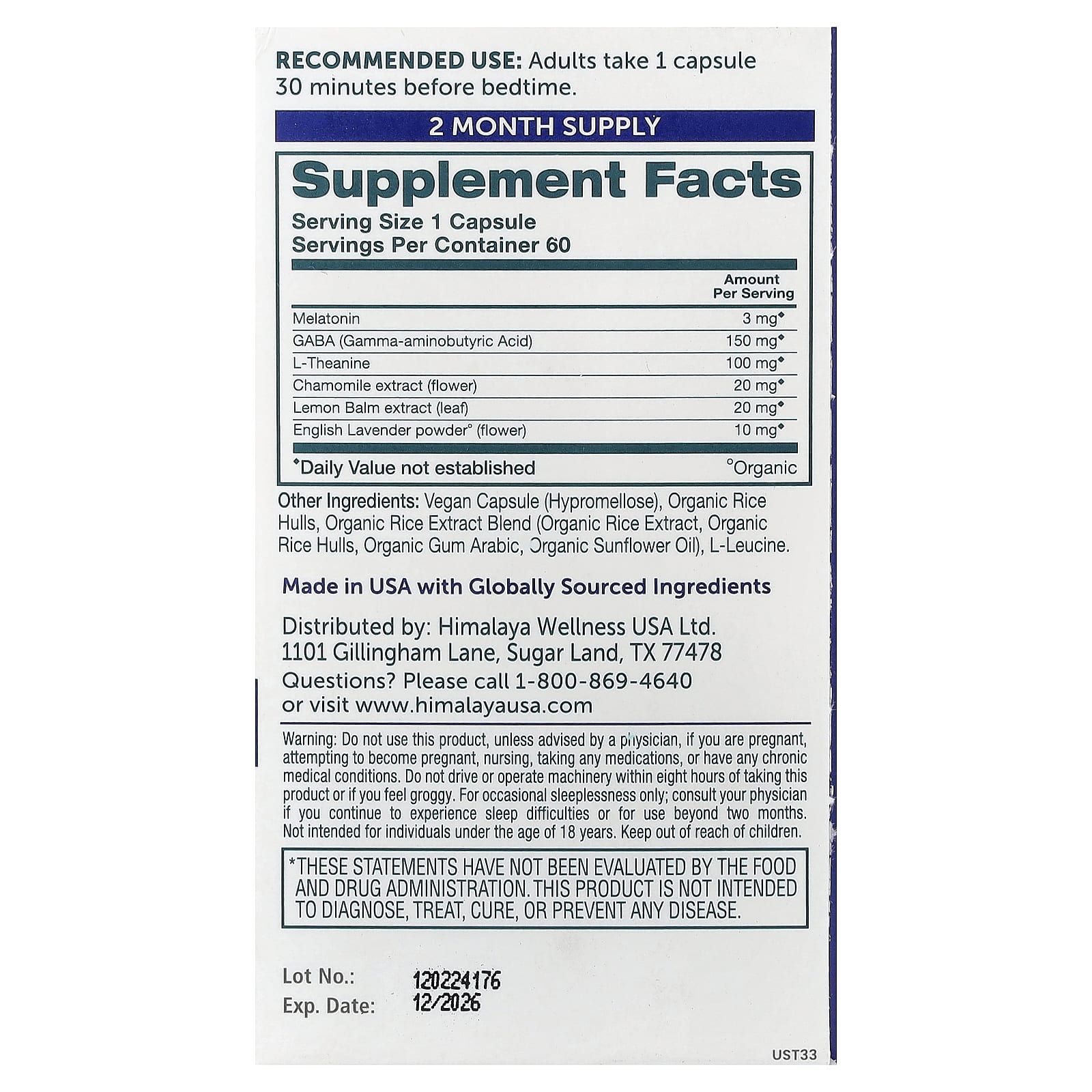 Не используйте данный продукт без рекомендации врача, если вы беременны, планируете беременность, кормите грудью, принимаете какие-либо препараты или страдаете хроническими заболеваниями. Не следует садиться за руль или управлять другими механизмами в течение восьми часов после приема этого продукта или в случае сонливости. Только от эпизодической бессонницы; проконсультируйтесь с врачом, если у вас сохраняются проблемы со сном, или для использования в течение двух месяцев. Не предназначено для лиц младше 18 лет. Хранить в недоступном для детей месте.