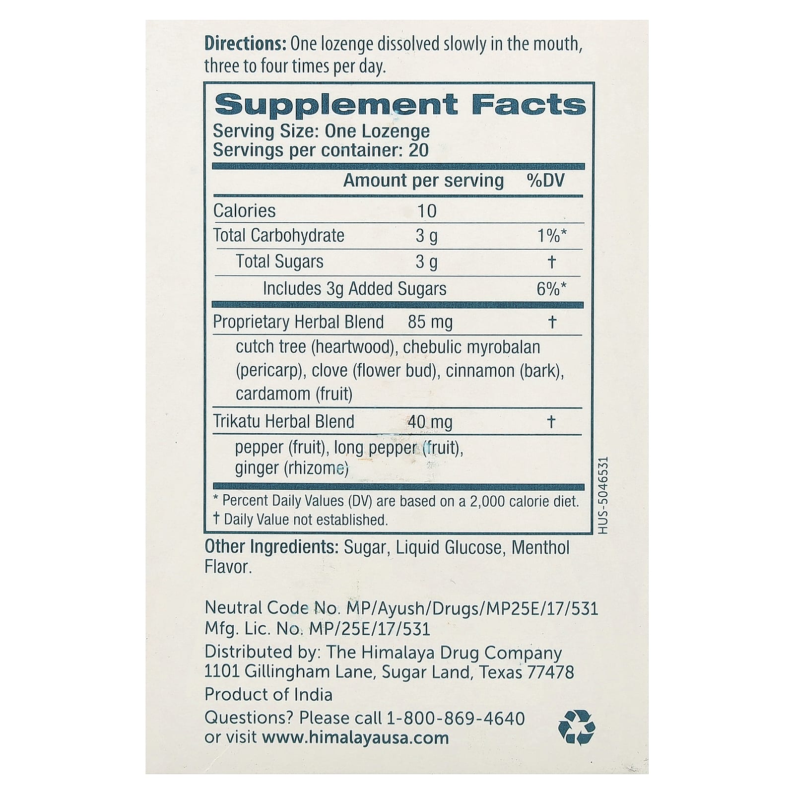 Himalaya, Koflet Lozenge®, оригинальный, ментол, 20 пастилок