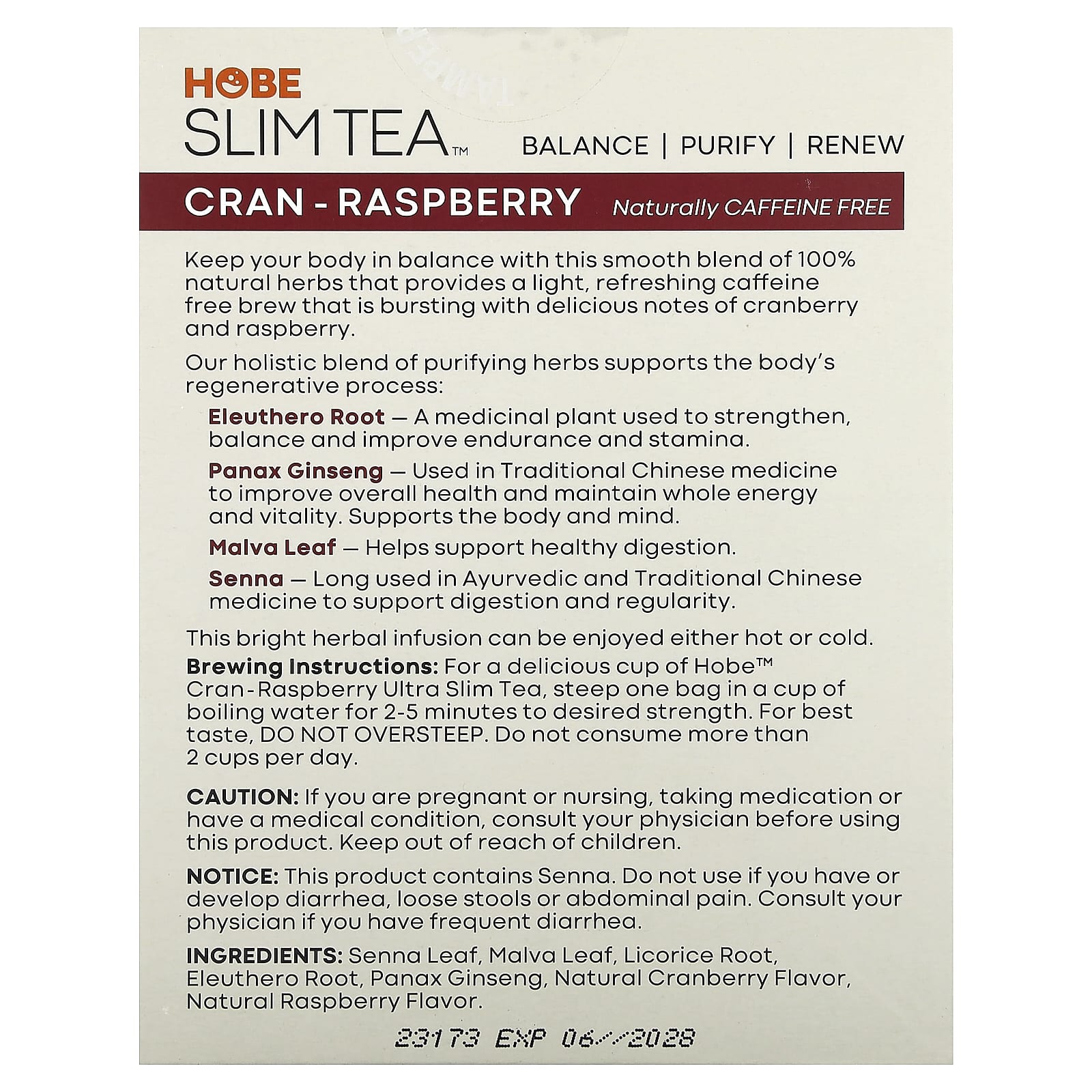Для приготовления восхитительной чашки ультратонкого чая Hobe™ с клюквой и малиной заваривайте один пакетик в чашке кипящей воды в течение 2–5 минут до желаемой крепости. Для лучшего вкуса не переваривайте. Не выпивать более 2 чашек в день.