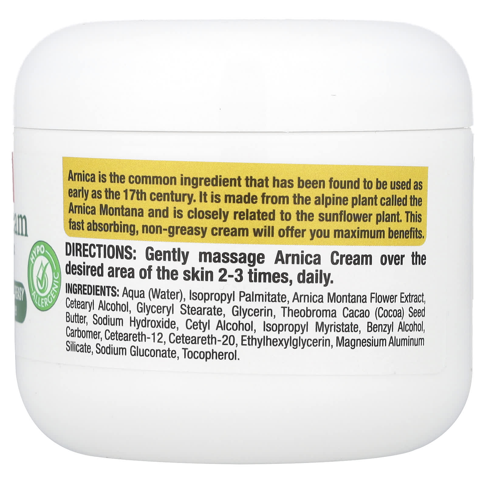 Арника — распространённый ингредиент, который использовался ещё в XVII веке. Его делают из альпийского растения арники (Arnica montana), которое тесно связано с подсолнечником. Этот быстро впитывающийся нежирный крем обеспечит максимальную пользу.