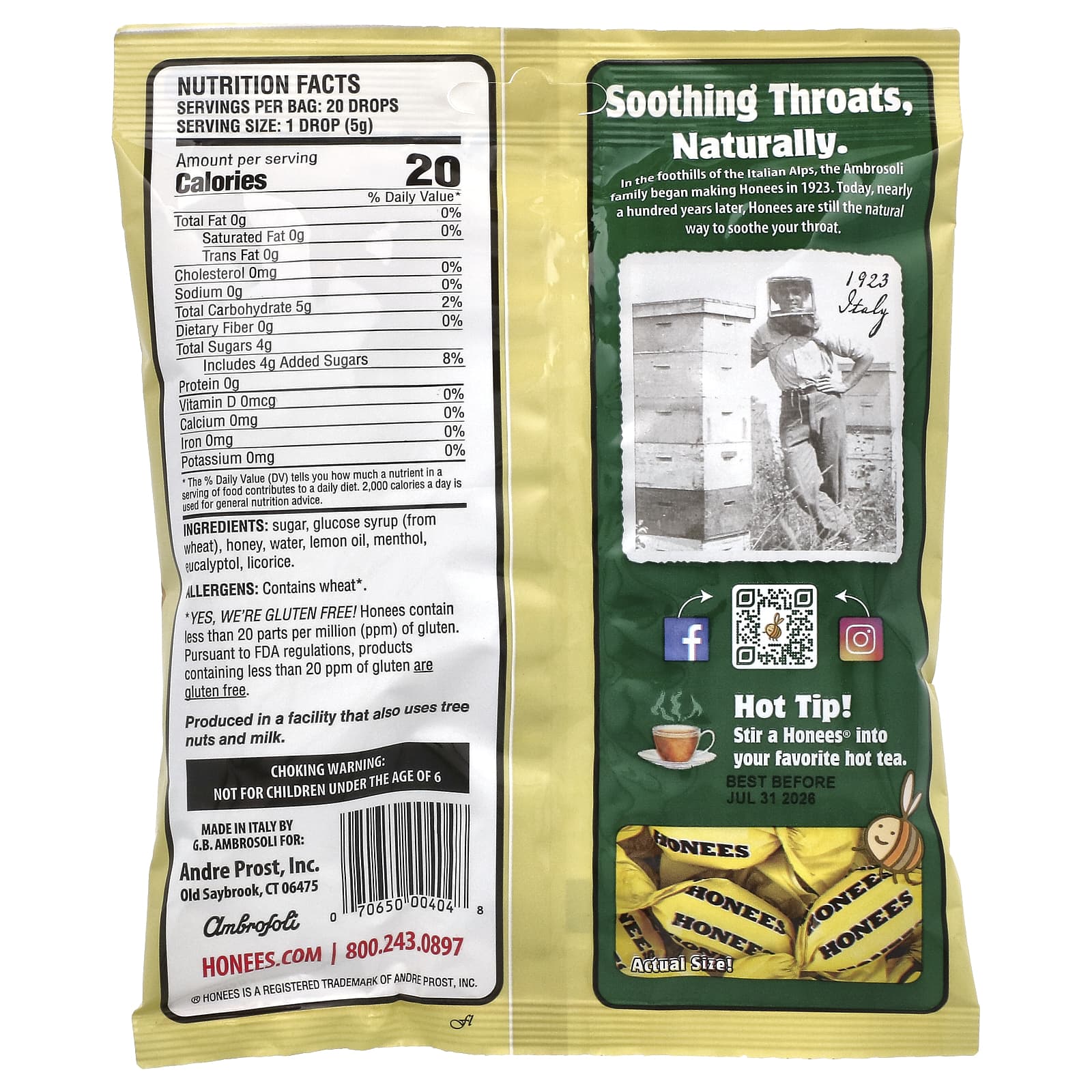 В предгорьях итальянских Альп семья Амброзоли начала производить леденцы Honees в 1923 г.