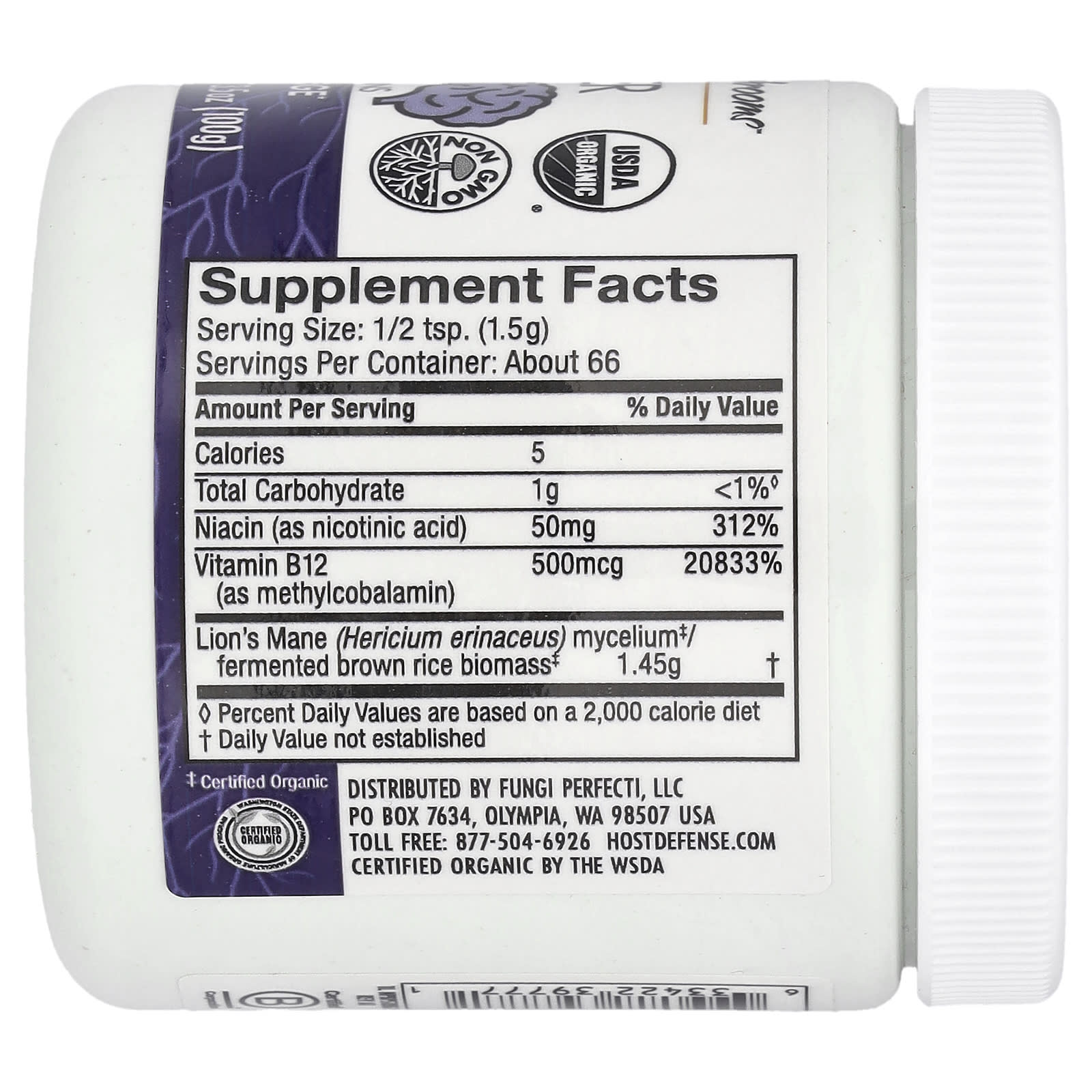 Разработано Полом Стаметсом для оптимальной концентрации внимания и памяти. Наш биодоступный порошок мицелия гриба львиного гриба органически выращен в США.