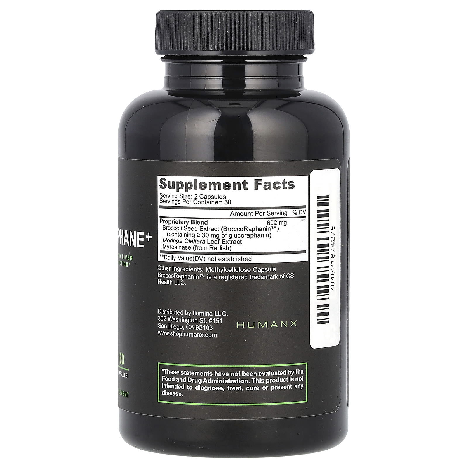 | Запатентованная смесь Экстракт семян брокколи (BroccoRaphanin ™) (содержит ≥ 30 мг глюкорафанина) Мирозиназа, экстракт листьев моринги масличной (из редиса) | 602 мг | ** |