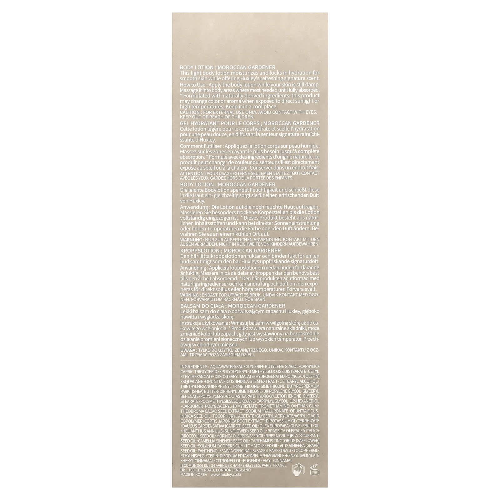 Этот легкий лосьон для тела увлажняет и удерживает влагу, делая кожу гладкой, а также обладает освежающим ароматом Huxley.