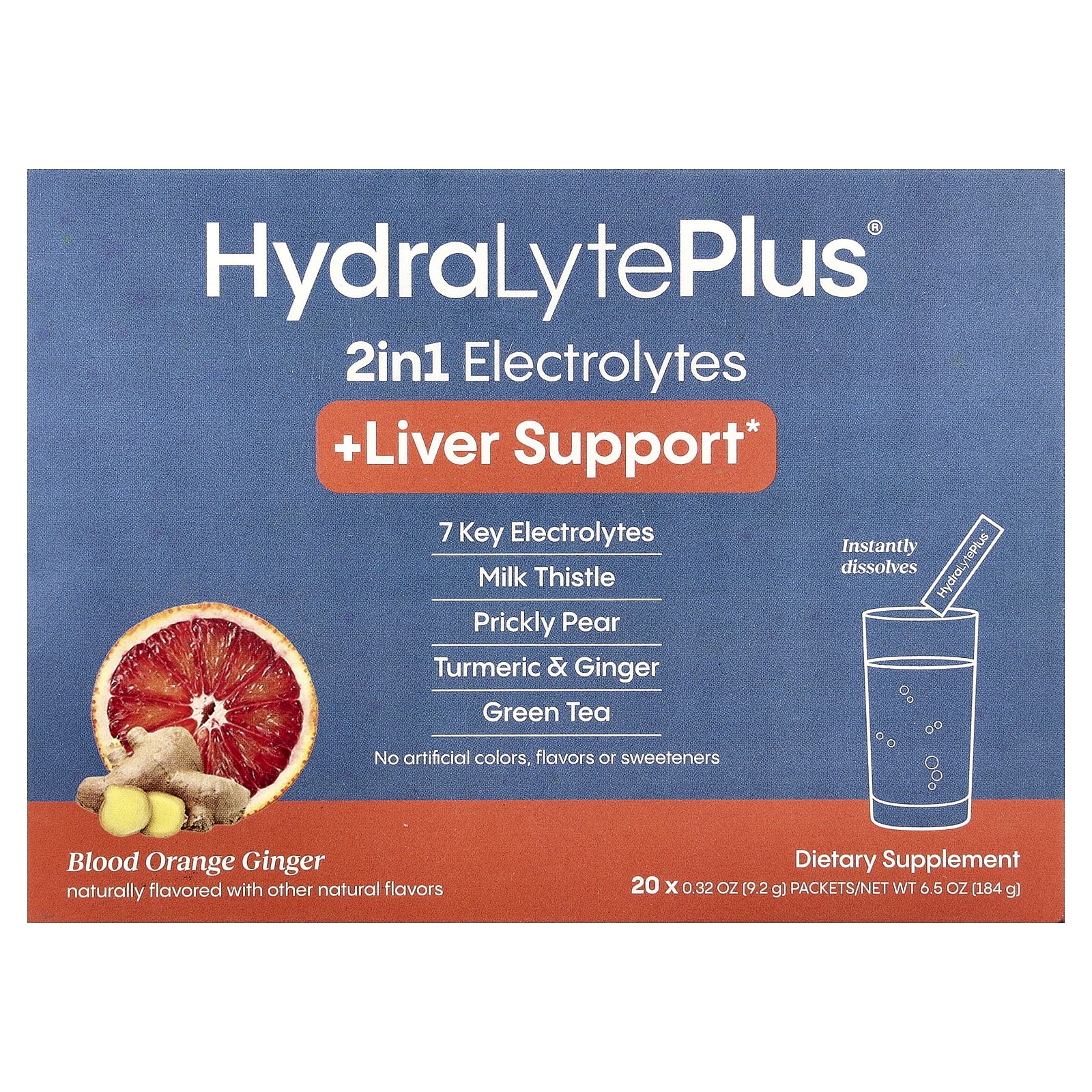 Hydralyte, HydraLyte Plus®, поддержка печени, красный апельсин и имбирь, 20 пакетиков по 9,2 г (0,32 унции)