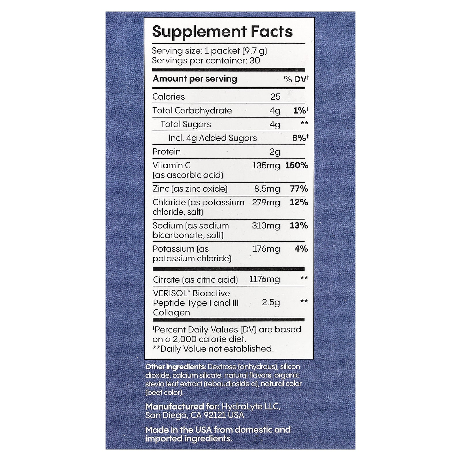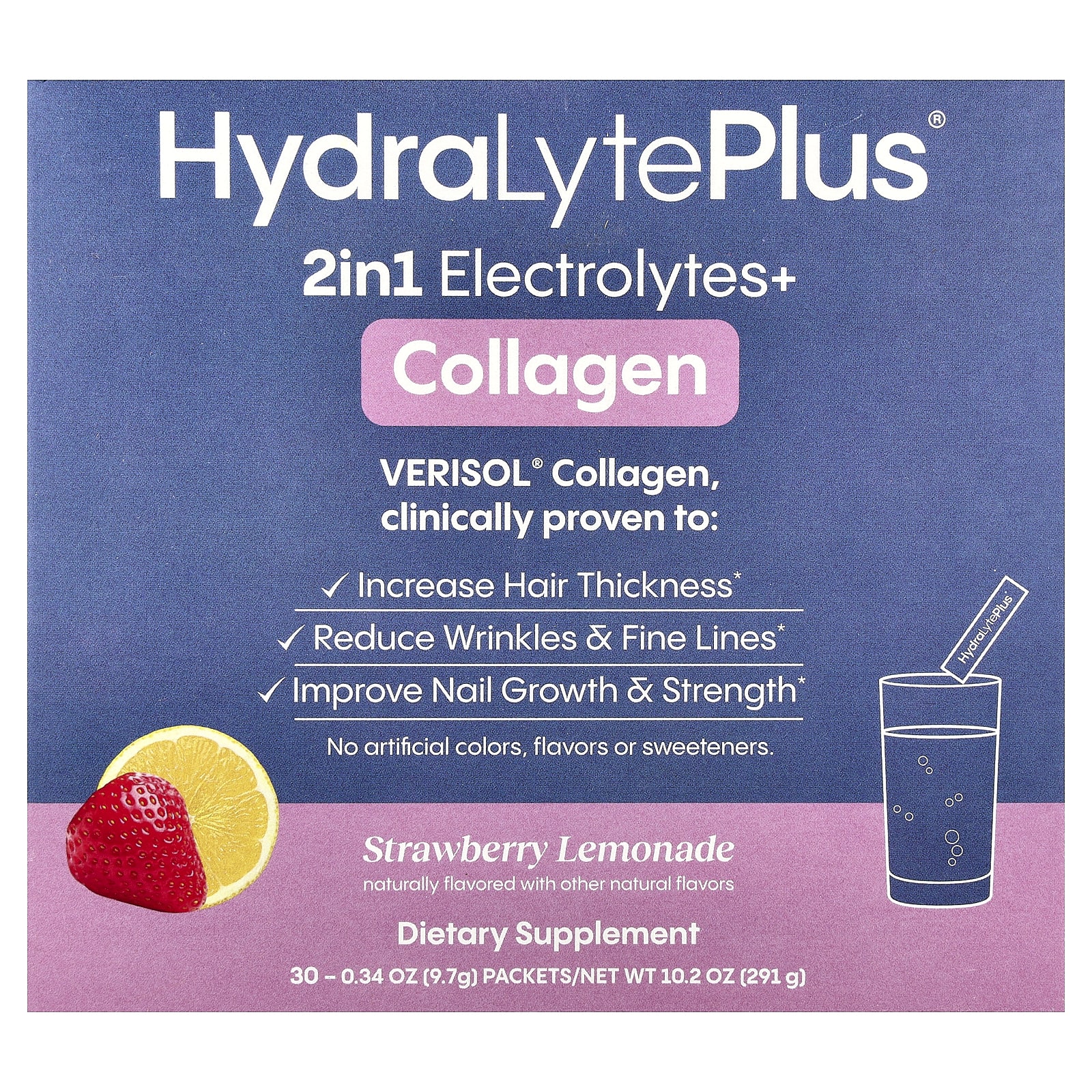 Коллаген VERISOL® обладает превосходной биодоступностью. Всего 2,5 г коллагена в день обеспечивают исключительные результаты, как показали многочисленные клинические исследования. HydraLyte Plus использует минимум глюкозы, необходимый для ускорения абсорбции воды.