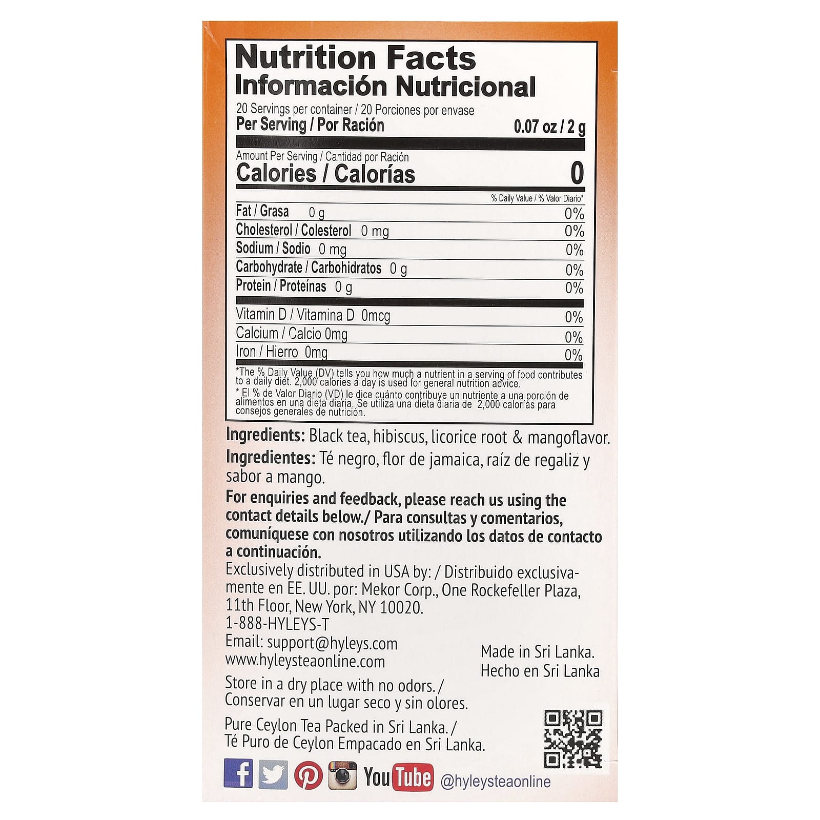 Hyleys Tea, Черный чай со льдом, манго, 20 чайных пакетиков в индивидуальной упаковке, 40 г (1,41 унции)