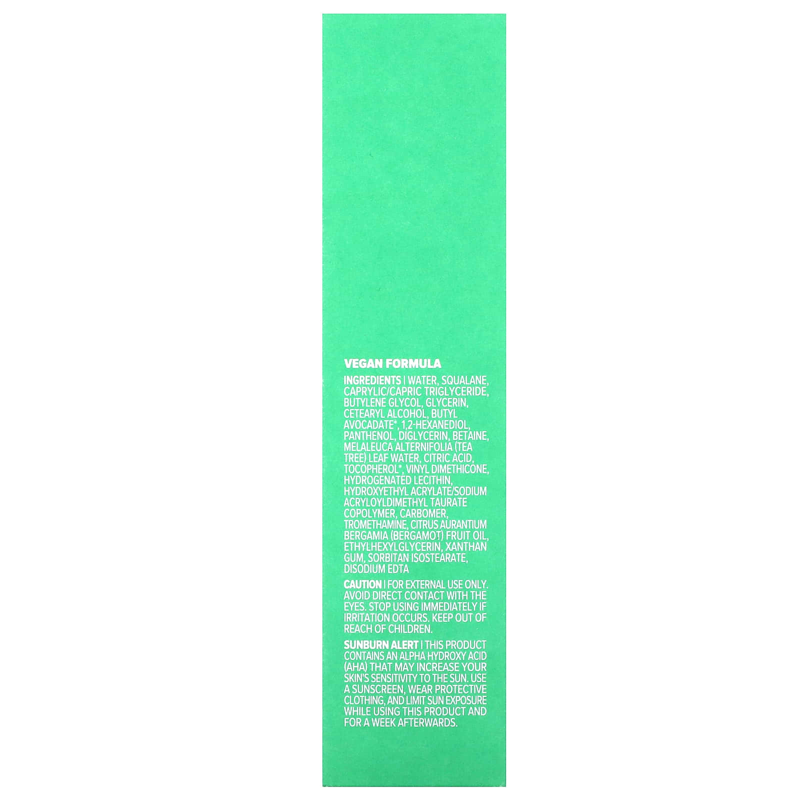 Вода, сквалан, каприловый/каприновый триглицерид, бутиленгликоль, глицерин, цетеариловый спирт, бутил авокадат, 1,2-гександиол, пантенол, диглицерин, бетаин, вода из листьев чайного дерева (Melaleuca alternifolia), токоферол лимонной кислоты, винилдиметикон, гидрогенизированный лецитин гидроксиэтилакрилат/натрия акрилоилдиметилтаурата сополимер, карбомер трометамин, масло бергамота (Citrus aurantium bergamia), этилгексилглицерин, ксантановая камедь, сорбитан изостеарат, двунатриевая ЭДТК.