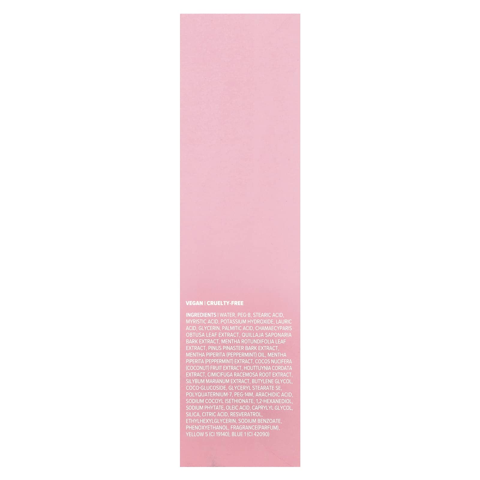 Вода, ПЭГ-8, стеариновая кислота, миристиновая кислота, гидроксид калия, лауриновая кислота, глицерин, пальмитиновая кислота, экстракт листьев кипарисовика (Chamaecyparis obtusa), экстракт коры мыльного дерева (Quillaja saponaria), экстракт листьев мяты яблочной (Mentha rotundifolia), экстракт коры сосны приморской (Pinus pinaster), масло перечной мяты (Mentha piperita), экстракт перечной мяты (Mentha piperita), экстракт кокоса (Cocos nucifera), экстракт хауттюйнии (Houttuynia cordata), экстракт корня клопогона кистевидного (Cimicifuga racemosa), экстракт расторопши (Silybum marianum), бутиленгликоль, кокоглюкозид, глицерил стеарат эмульгирующий, поликватерниум-7, ПЭГ-14м, арахиновая кислота, кокоил изетионат натрия, 1,2-гександиол, фитат натрия, олеиновая кислота, каприлилгликоль, диоксид кремния, лимонная кислота, ресвератрол, этилгексилглицерин, бензоат натрия, феноксиэтанол, отдушка (парфюмерная композиция), краситель желтый 5 (CI 19140), краситель синий 1 (CI 42090).