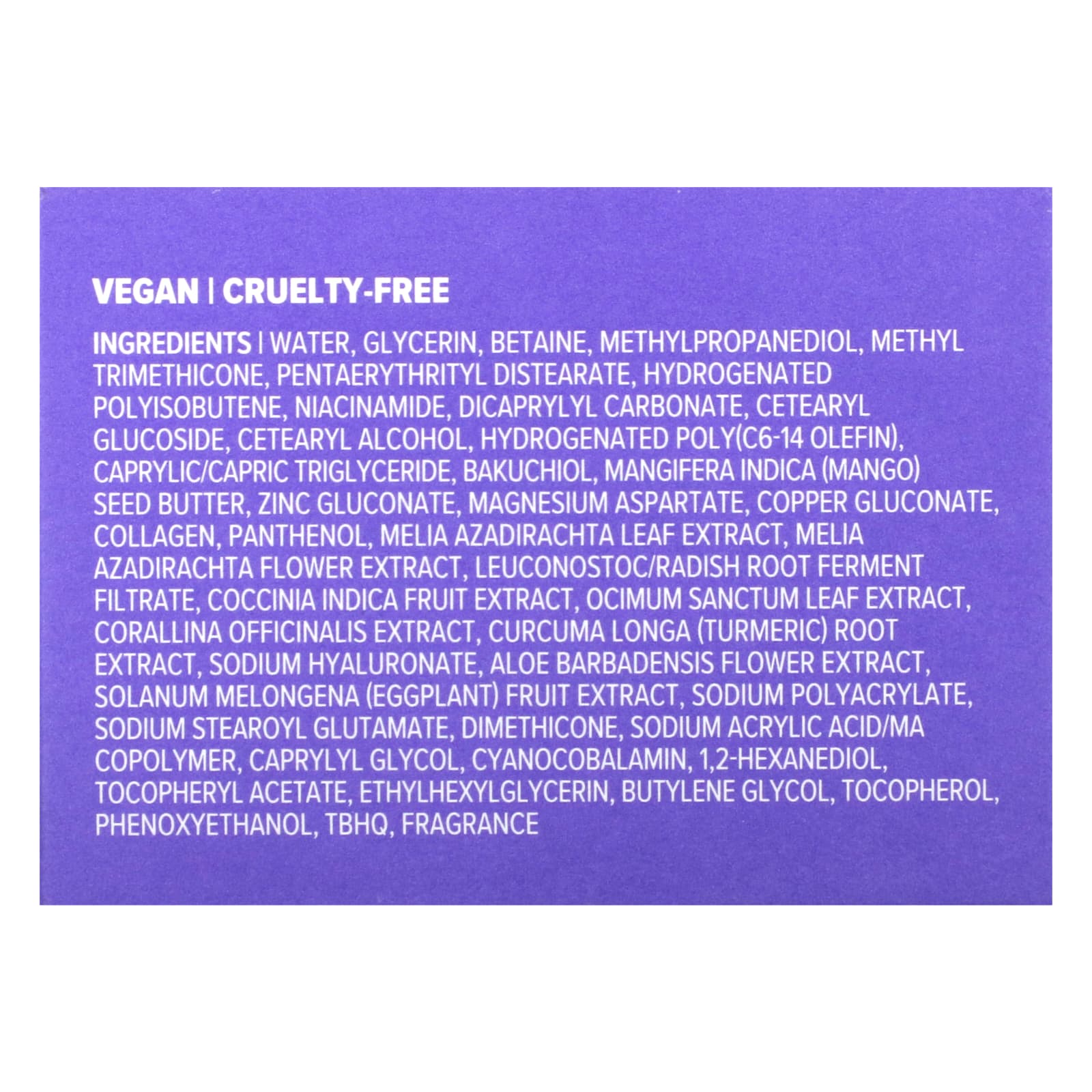 Вода, глицерин, бетаин, метилпропандиол, метилтриметикон, пентаэритритил дистеарат, гидрогенизированный полиизобутен, никотинамид, дикаприлил карбонат, цетеариловый глюкозид, цетеариловый спирт, гидрогенизированный поли (C6-14 олефин), каприловый/каприновый триглицерид, бакучиол, масло из косточек манго (Mangifera indica), глюконат цинка, аспартат магния, глюконат меди, коллаген, пантенол, экстракт листьев дерева ним (Melia azadirachta), экстракт цветков дерева ним (Melia azadirachta), лейконосток/ферментированный фильтрат корня редиса, экстракт плодов кокцинии индийской (Coccina indica), экстракт листьев туласи (Ocimum sanctum), экстракт кораллины целебной (Corallina officinalis), экстракт корня куркумы (Curcuma longa), гиалуронат натрия, экстракт цветков алоэ барбаденсис (Aloe barbadensis), экстракт плодов баклажана (Solanum melongena), полиакрилат натрия, натрия стеароил глутамат, диметикон, натрий акриловая кислота / ма сополимер, каприлилгликоль, цианокобаламин, 1,2-гександиол, токоферилацетат, этилгексилглицерин, бутиленгликоль, токоферол, феноксиэтанол, tbhq, отдушка.