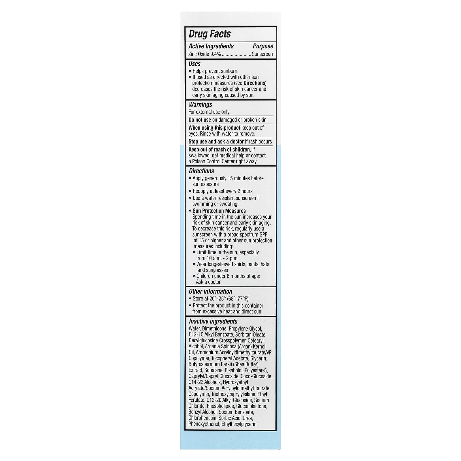 | Оксид цинка 9,4% | Солнцезащитное средство |