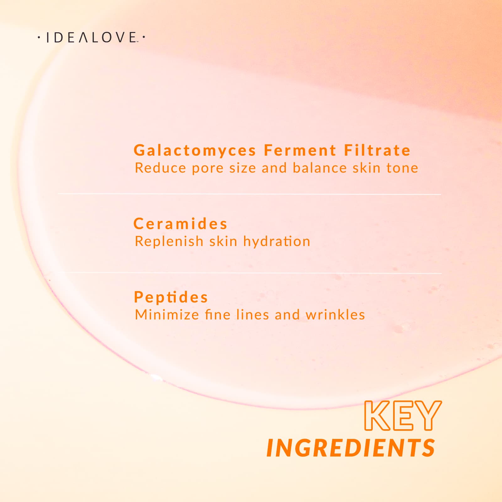 Суперферментная эссенция It’s All For You от Idealove® — это отличное дополнение к вашему ежедневному уходу за кожей. Сделайте кожу более упругой и гладкой с помощью этой эффективной эссенции, содержащей укрепляющие кожный барьер ферментированные ингредиенты, пептиды и керамиды, обеспечивающие указанные ниже преимущества.