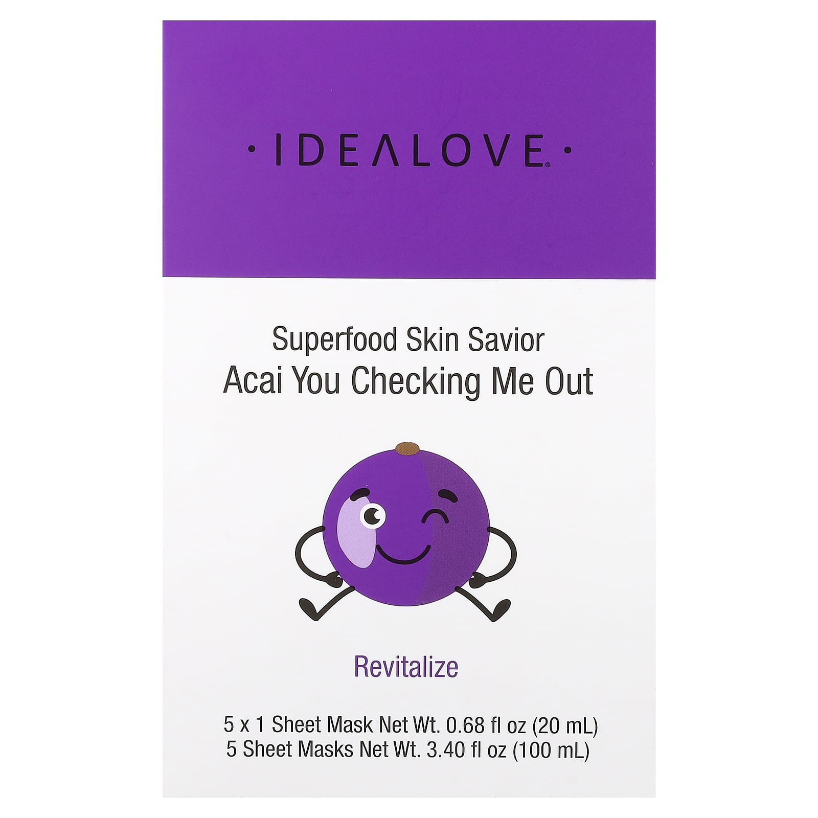 Idealove, Superfood Skin Savior, маска с суперфудами, асаи, 5 шт. по 20 мл (0,68 жидк. унции)