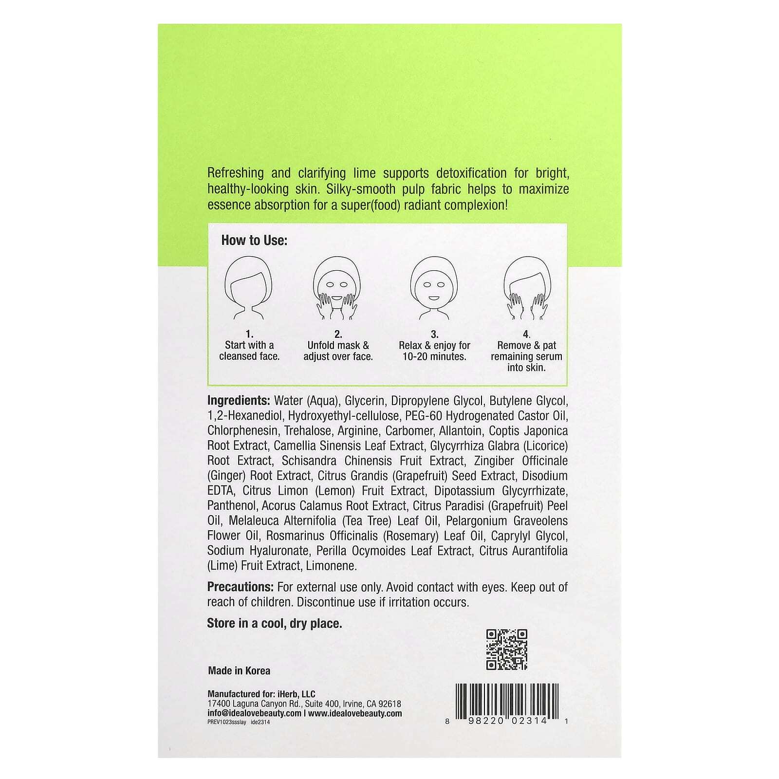 Устройте себе спа в домашних условиях с маской с суперфудами Superfood Skin Savior с экстрактом лайма от Idealove®. В этой тканевой маске с суперфудами используется освежающий и очищающий лайм, который способствует детоксикации и делает кожу сияющей и здоровой. Маска, изготовленная из гладкой и шелковистой ткани, помогает максимально впитать эссенцию и обеспечивает сияющий цвет лица благодаря суперфудам!