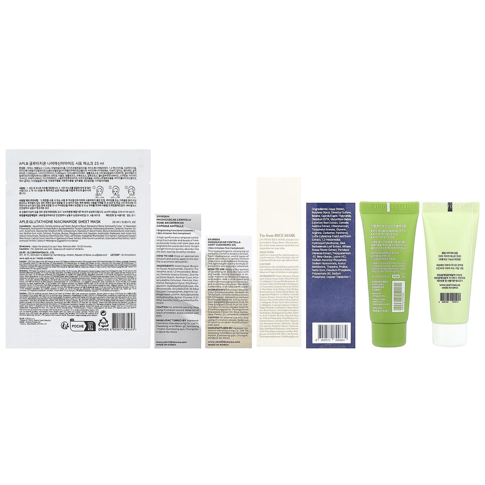 Полный набор корейской косметики для ухода за кожей в 7 мини-версиях — идеальное решение для сияния кожи, где бы вы ни находились. Начните с двойного очищения, затем воспользуйтесь тонером, нанесите увлажняющее средство и сделайте маску в зависимости от потребностей вашей кожи.