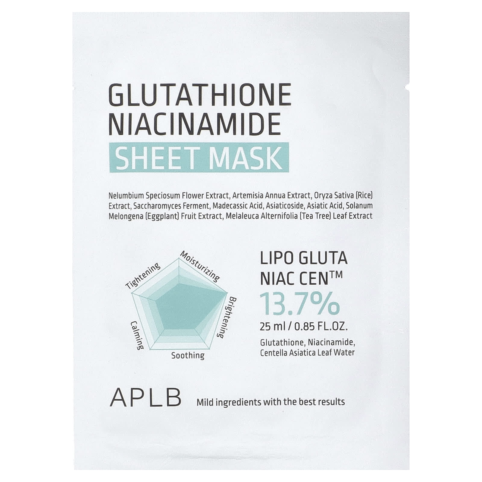 - APLB, тканевая маска с глутатионом и никотинамидом, 1 шт., 25 мл (0,85 жидк. унции)